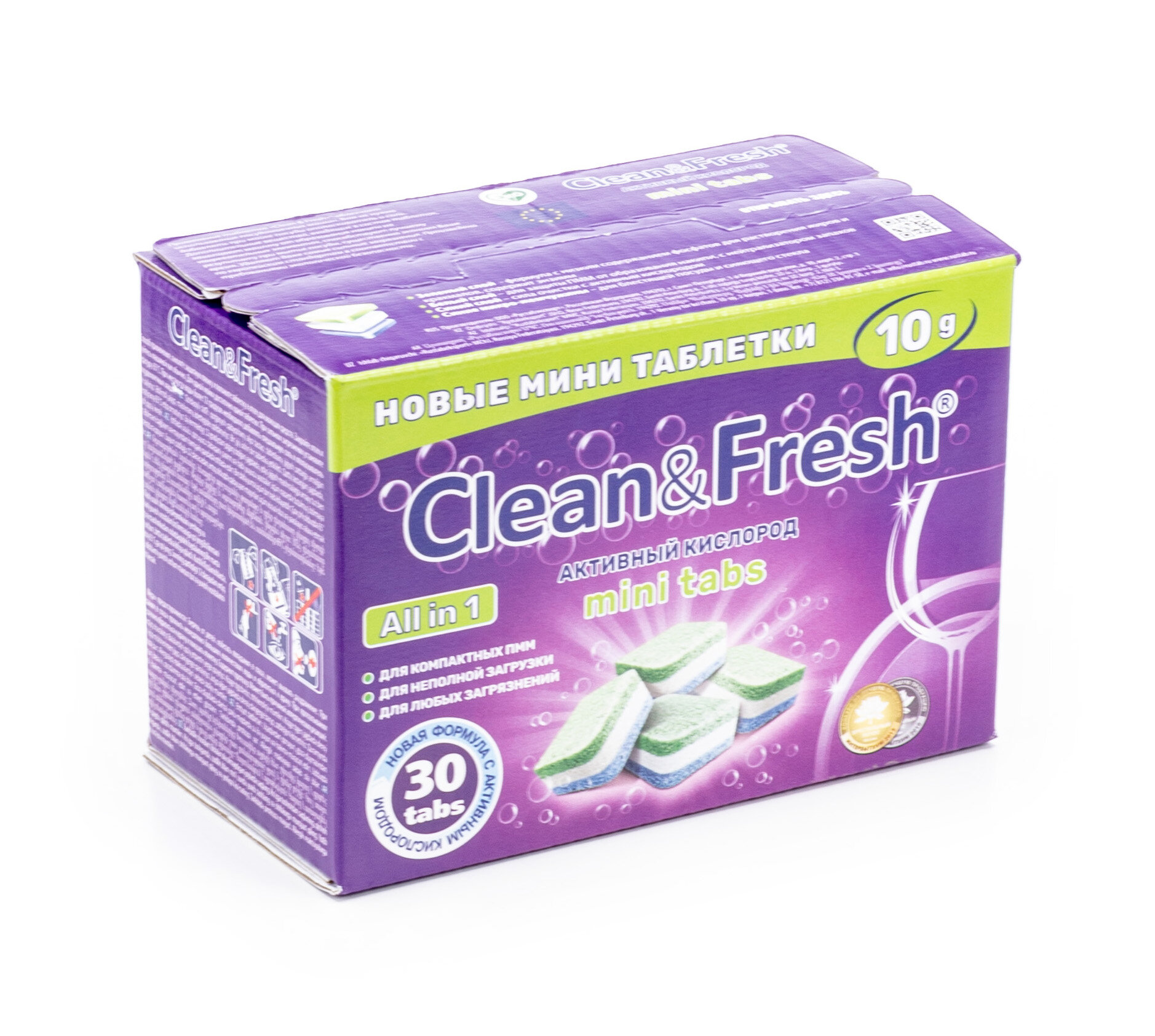 Мини-таблетки для посудомоечных машин CLEAN & FRESH CLEAN&FRESH All in 1, 30 шт*10 г