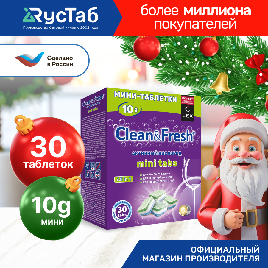Мини таблетки для посудомоечной машины Clean&Fresh mini tabs Всё в 1 / 30 шт. / капсулы для посудомоечной машины