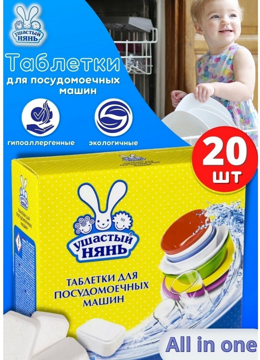 Таблетки для посудомоечной машины Ушастый Нянь All in 1 таблетки, 20 шт., коробка