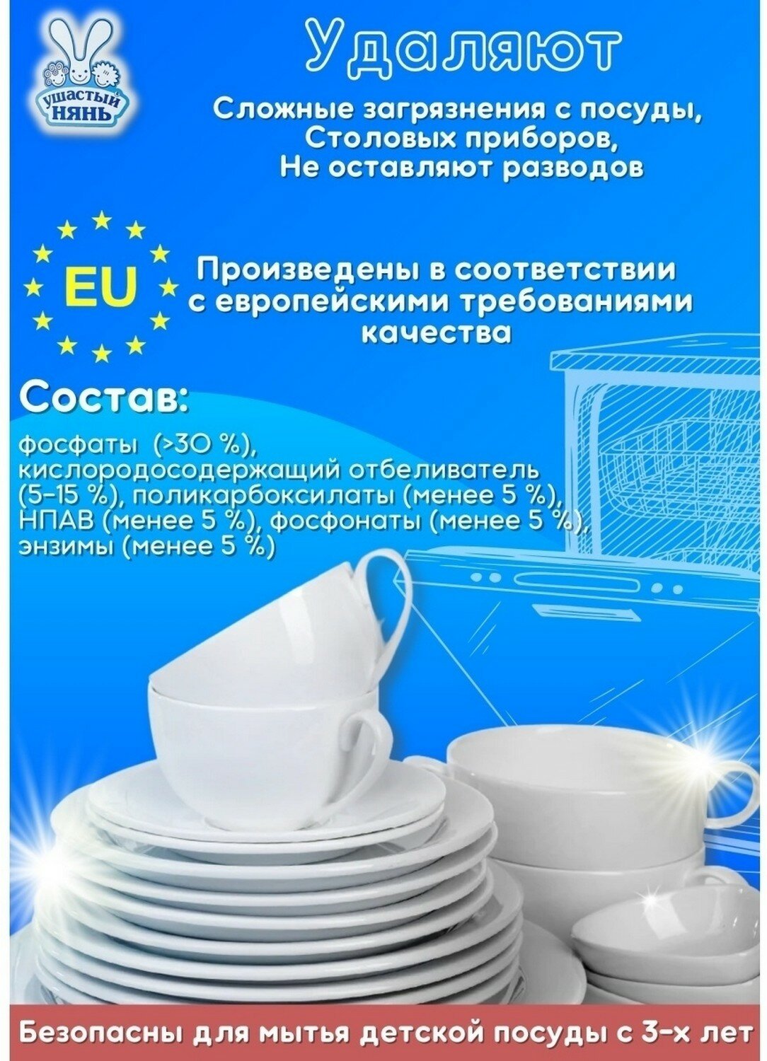 | Отзыв: | Всегда пользуюсь этими таблетками. На мой взгляд отмывают не хуже Финиша, но в отличии от него, у Ушастика нет этого ядовитого запаха. |