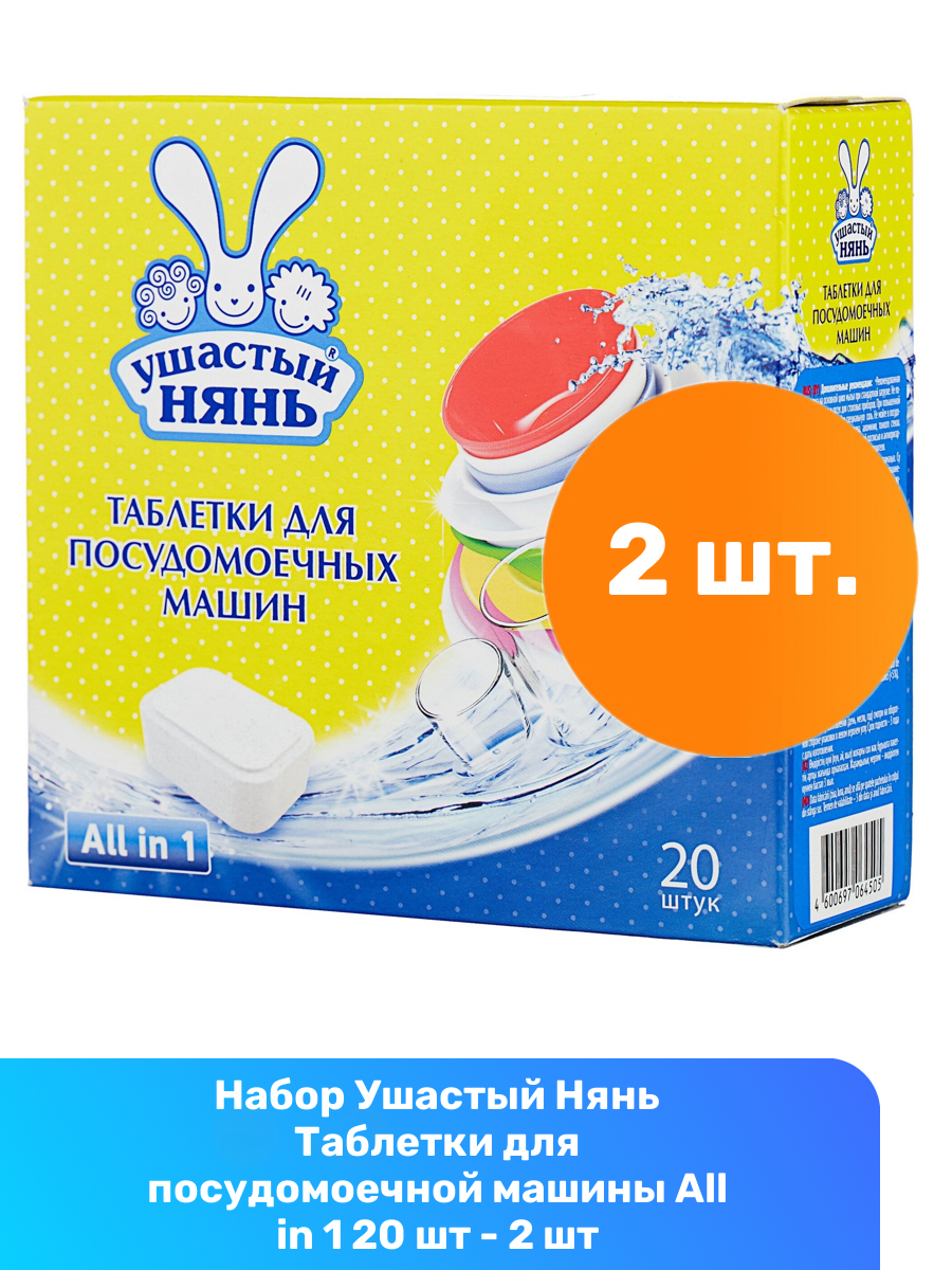 Купить Ушастый Нянь Таблетки для посудомоечной машины All in 1 20 шт - 2 шт