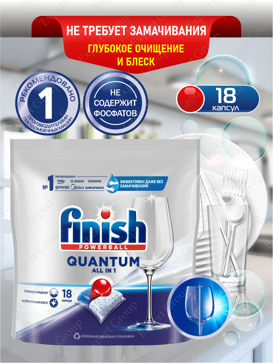 Купить Капсулы для мытья посуды Finish Quantum для посудомоечной машины, таблетки для посудомоечных машин, 18 шт.