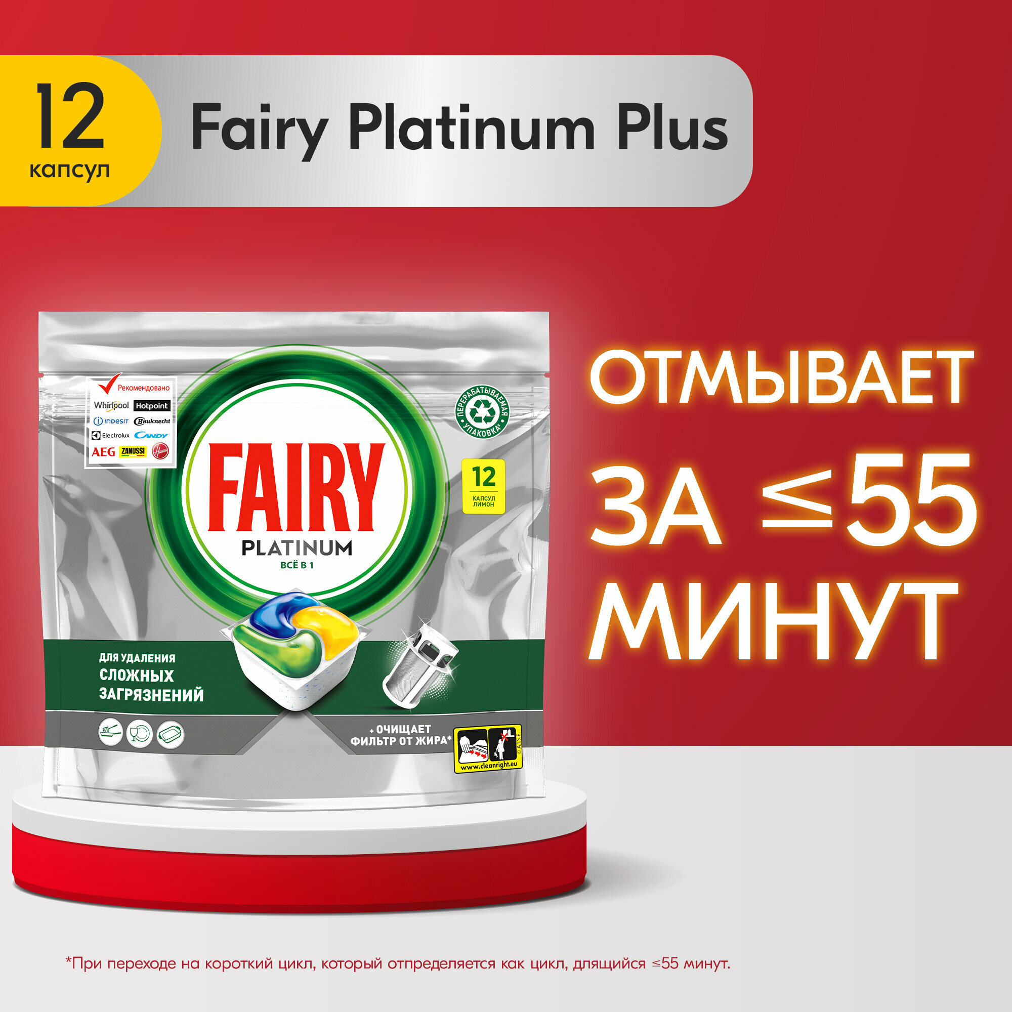 Капсулы для посудомоечной машины Fairy Platinum All in One Лимон, бесфосфатные таблетки для мытья посуды, 12 шт.
