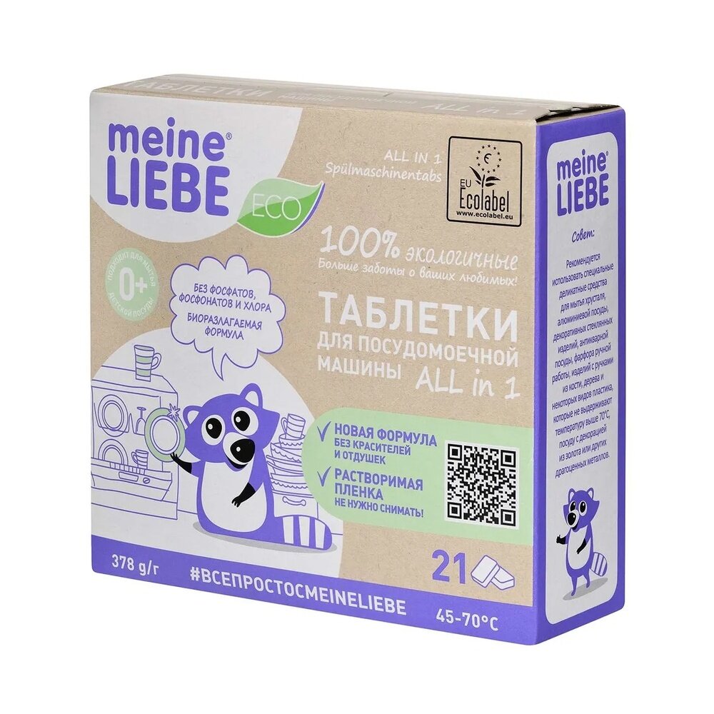 Таблетки для посудомоечной машины Meine Liebe All in 1, 21 шт., 0.38 кг, коробка