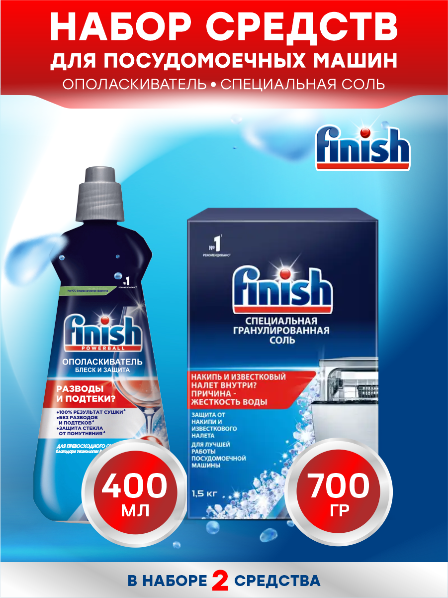 Набор FINISH для ПММ Соль 700 гр. + Ополаскиватель Блеск и Сушка 400 мл.