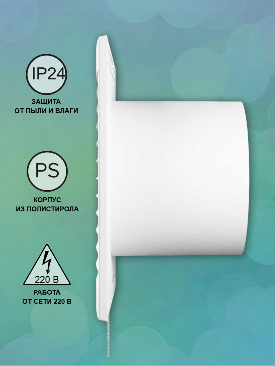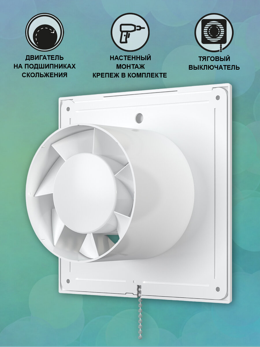 Вентилятор вытяжной осевой AURAMAX A 4-02, с тяговым выключателем, тонкая лицевая панель, D 100 мм, белый