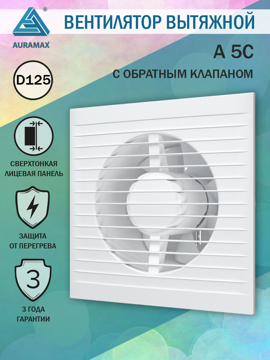 Купить Вентилятор накладной AURAMAX A 5 C, D125 мм, с обратным клапаном, вытяжка в санузел