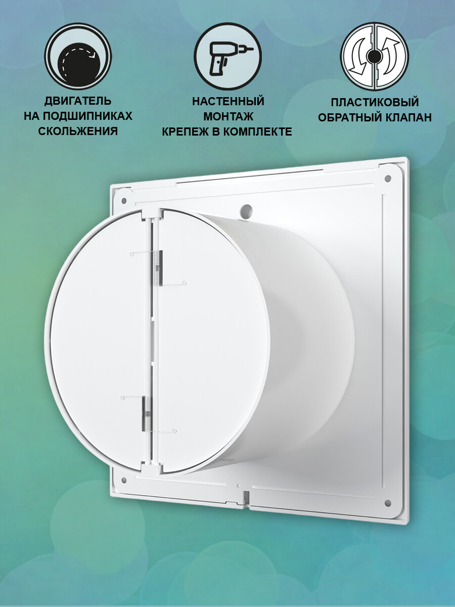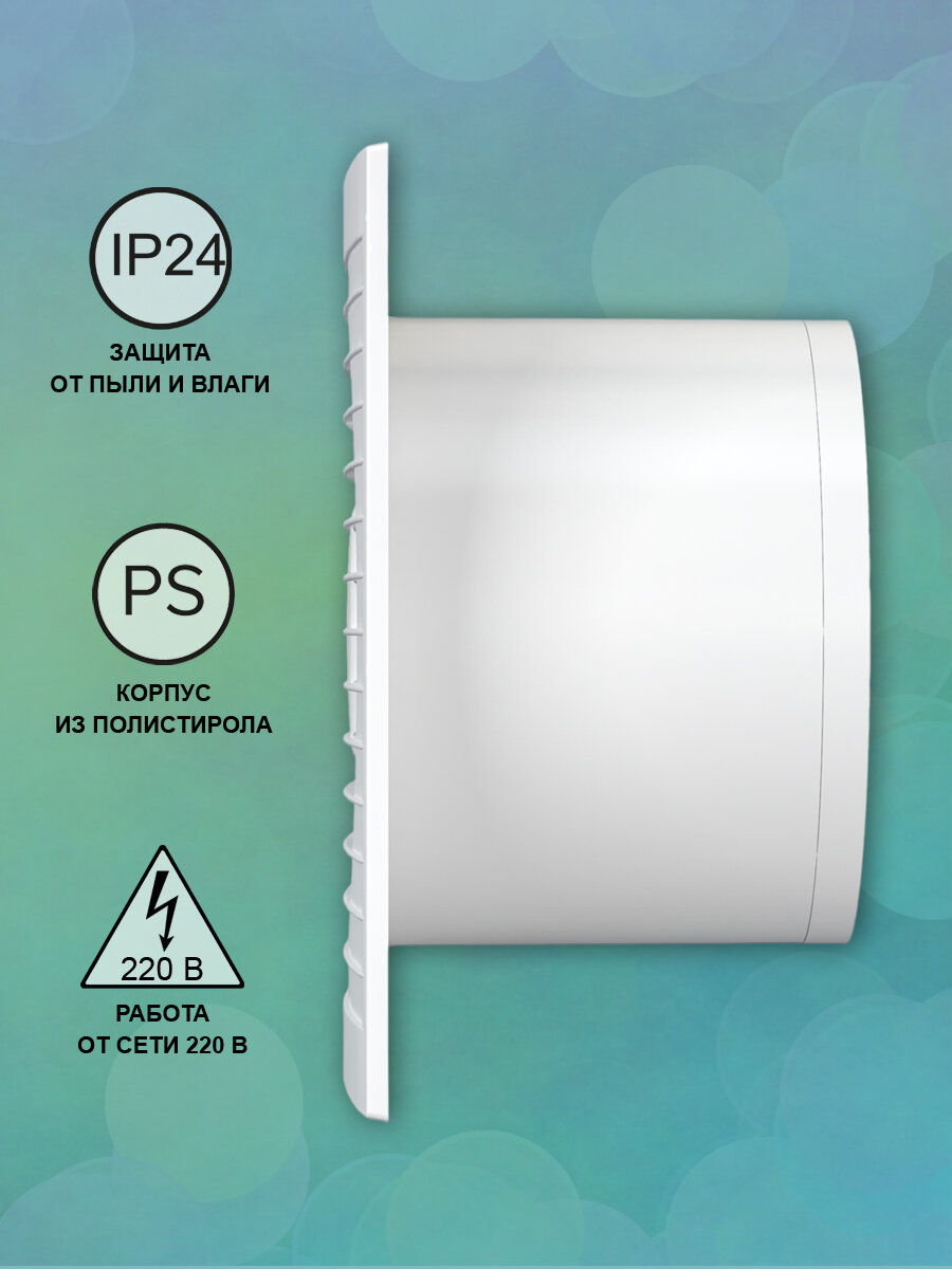 Вентилятор вытяжной осевой AURAMAX A 4-02, с тяговым выключателем, тонкая лицевая панель, D 100 мм, белый