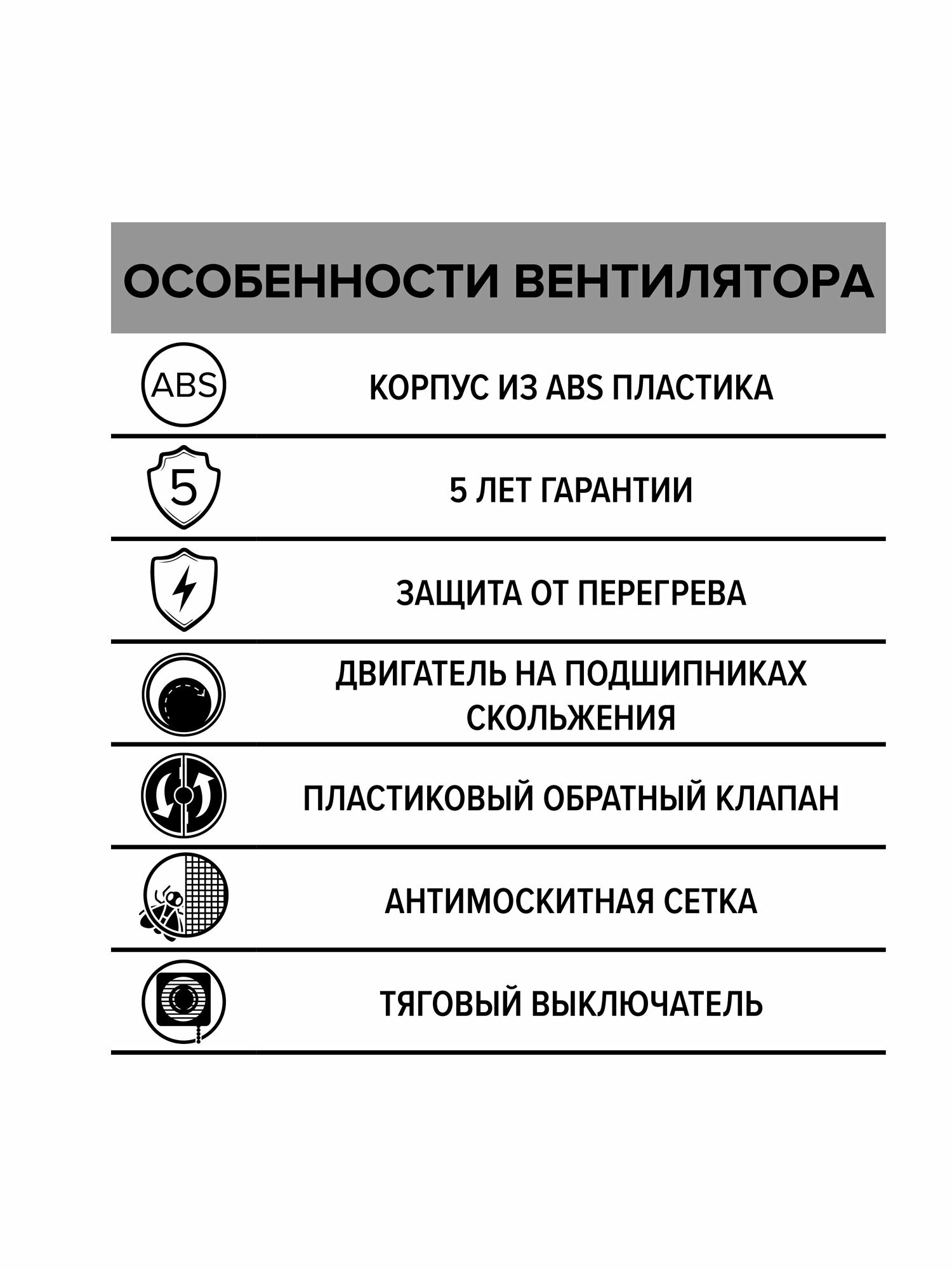 Вентилятор вытяжной 150 с обратным клапаном москитной сеткой и выключателем E 150S C -02 интересное: