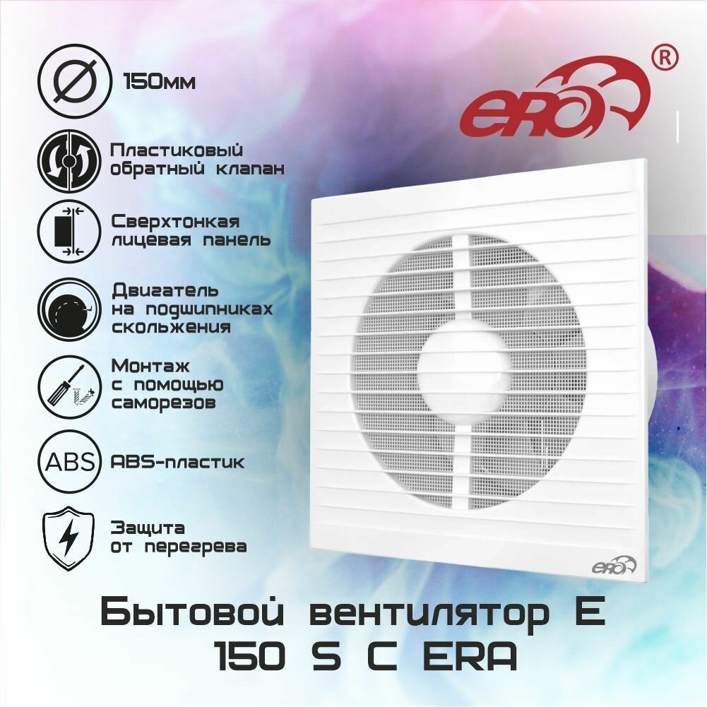Ниже Вы можете прочитать отзывы на Вентилятор осевой ERA E 150 S 150 мм c антимоскитной сеткой, ознакомится с подробными характеристиками, посмотреть интересные обзоры и фотографии на Вентилятор осевой ERA E 150 S 150 мм c антимоскитной сеткой.