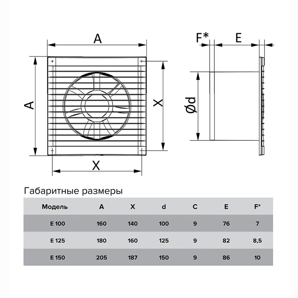 Вентилятор осевой вытяжной E 150 SС антимоскитная сетка и обратный клапан D150