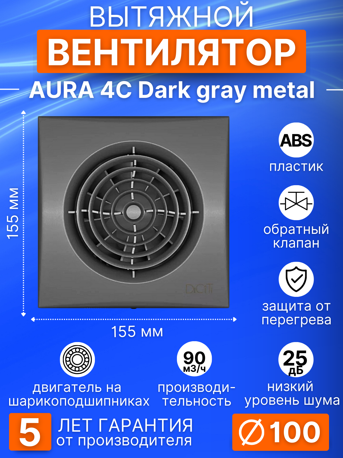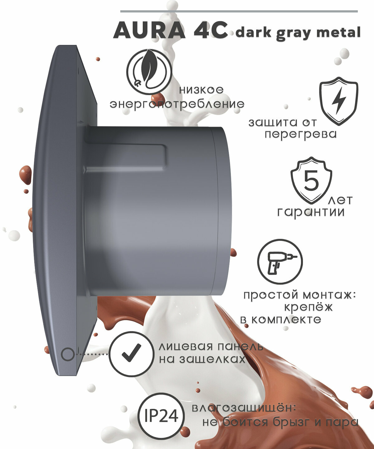 СохранитьВентилятор вытяжной DiCiTi AURA 4C dark gray metal, 100 мм, обратный клапан, темно-серый металлик интересное: