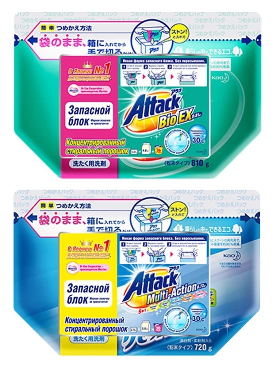 Купить Концентрированный стиральный порошок, Набор сменных блоков Attack Multi-Action 720 гр и Bio-EX 810 гр