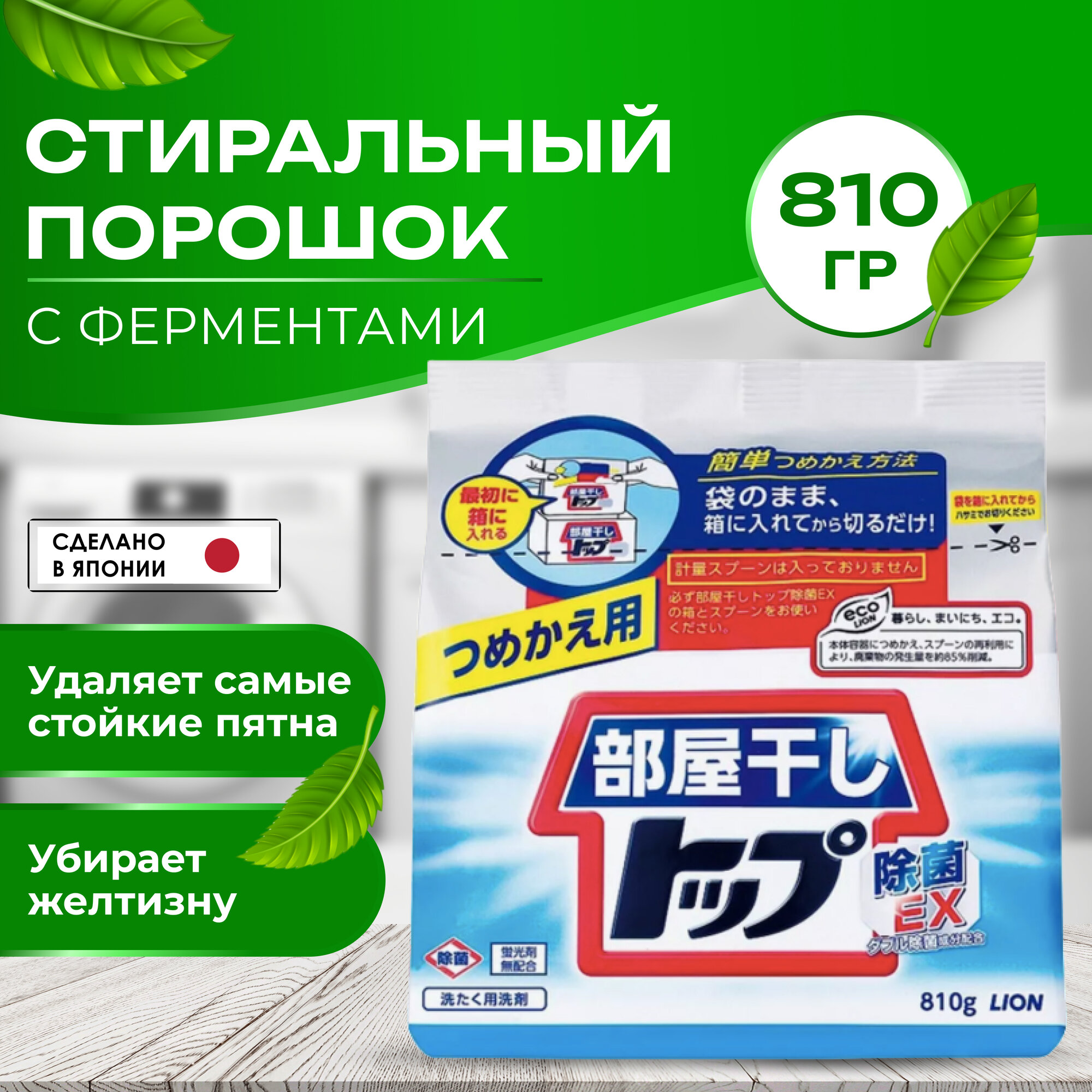 LION Японский стиральный порошок ТОП - сухое белье для сушки белья в помещениях, "Top for Rooms", 810 гр. (м/у)