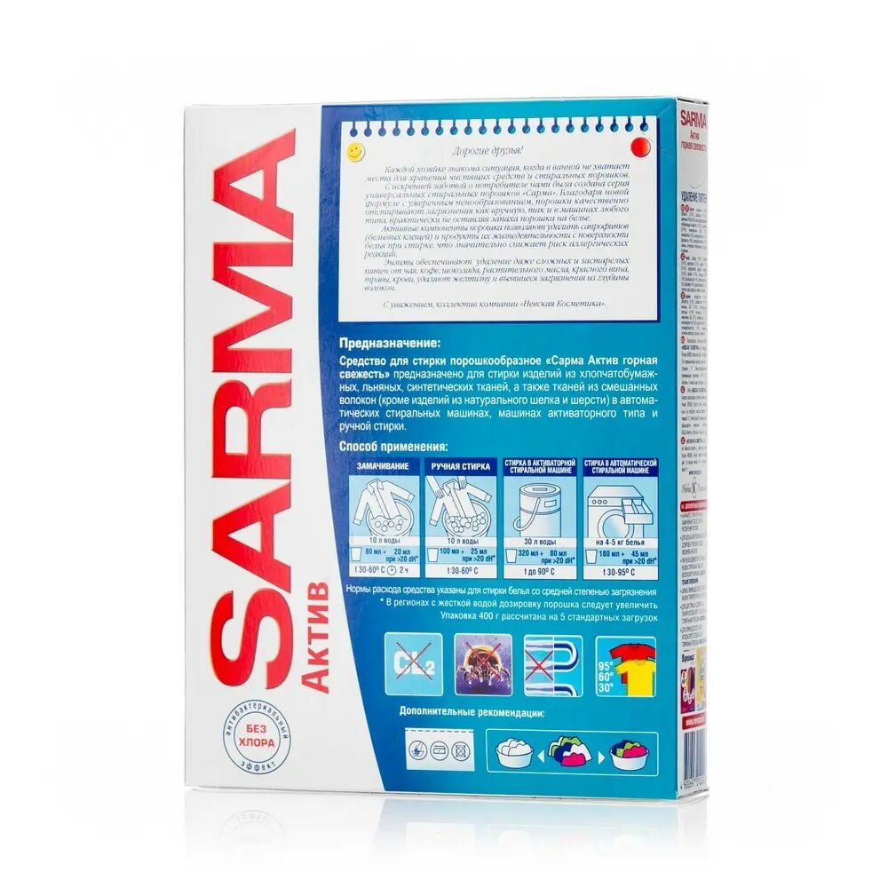 SARMA Стиральный порошок Active Горная свежесть универсальный, 400 г
