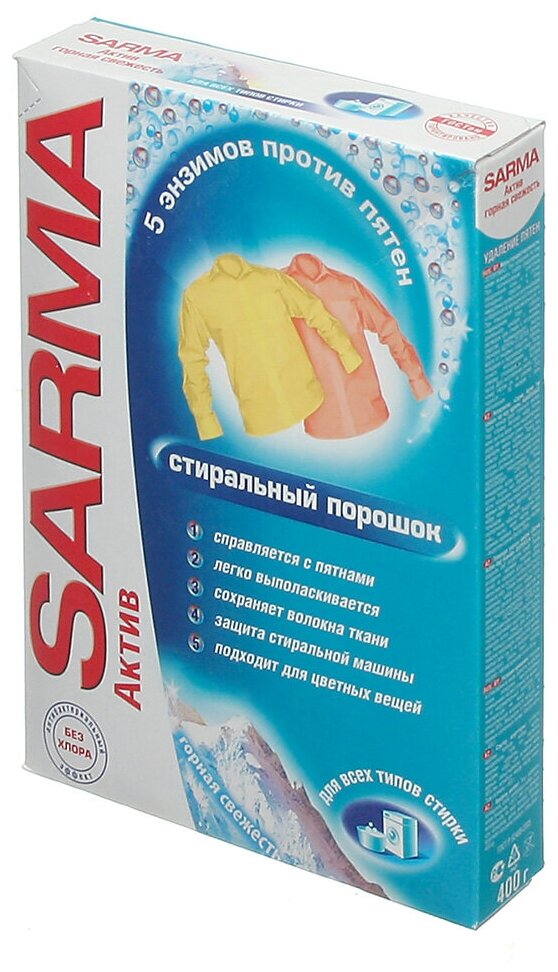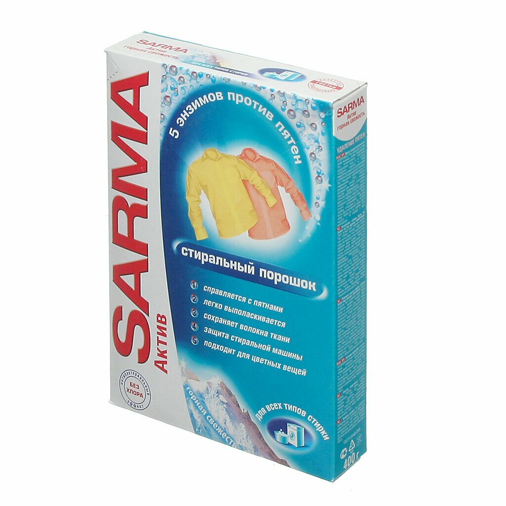 Ниже Вы можете прочитать отзывы на Стиральный порошок Sarma Актив "Горная свежесть", свежесть + свобода от пятен, 400 г 1575741, ознакомится с подробными характеристиками, посмотреть интересные обзоры и фотографии на Стиральный порошок Sarma Актив "Горная свежесть", свежесть + свобода от пятен, 400 г 1575741.