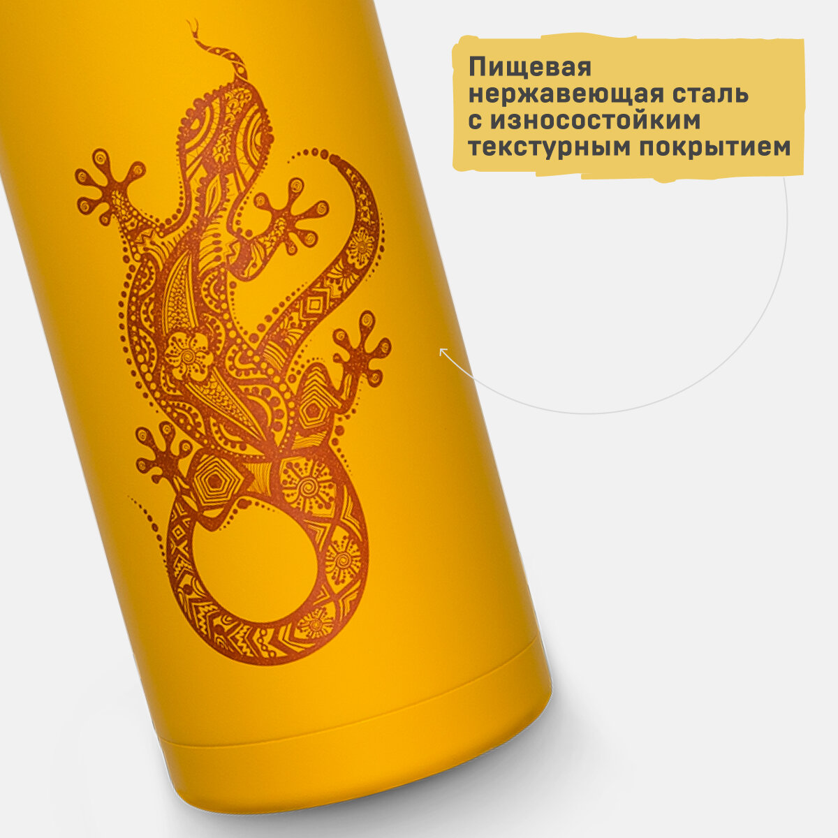 Термокружка 500 мл Арктика Сититерм 702-500 желтая Ящер. Термос для кофе, чая 0,5 л. Термобутылка с поилкой