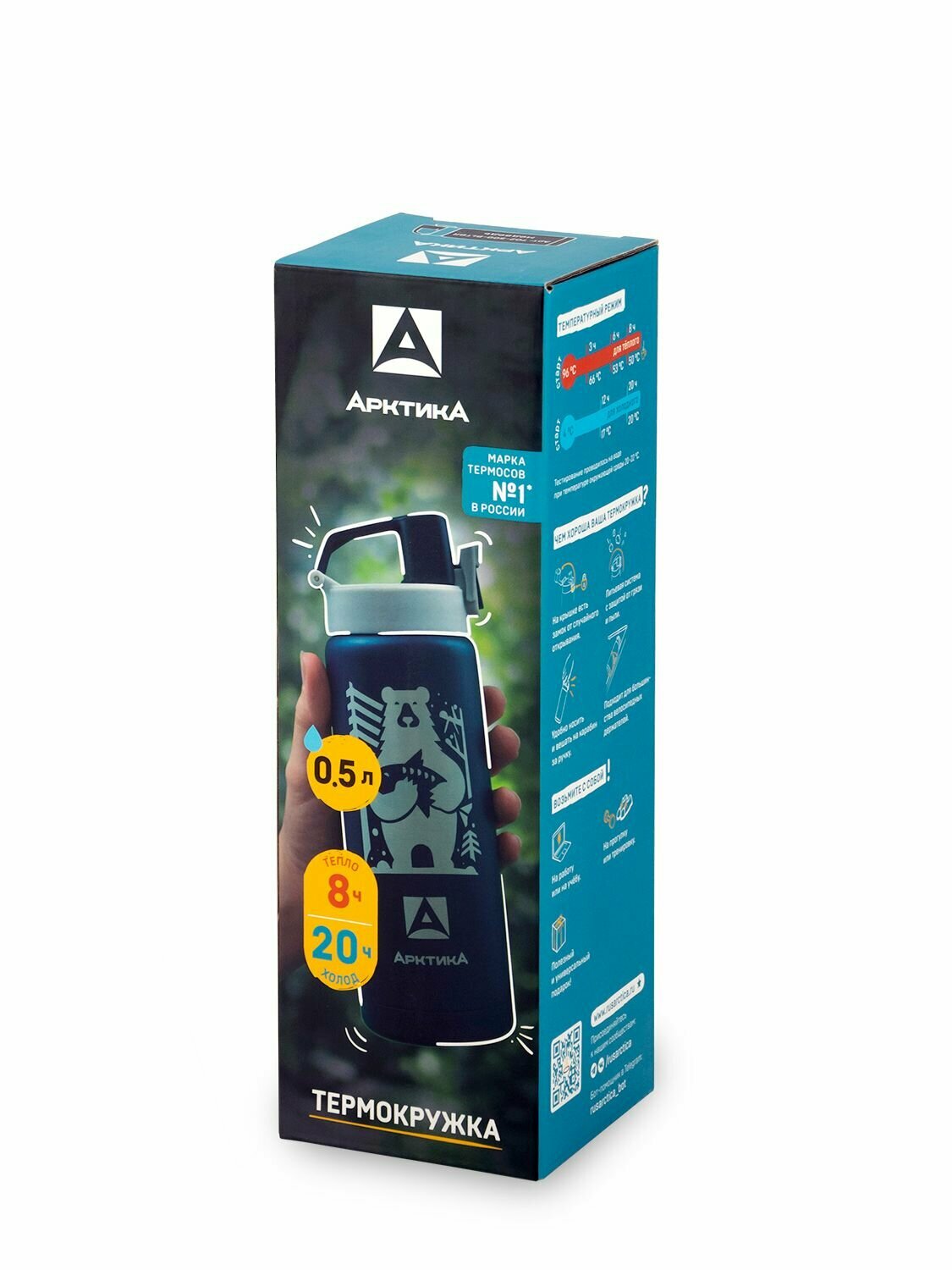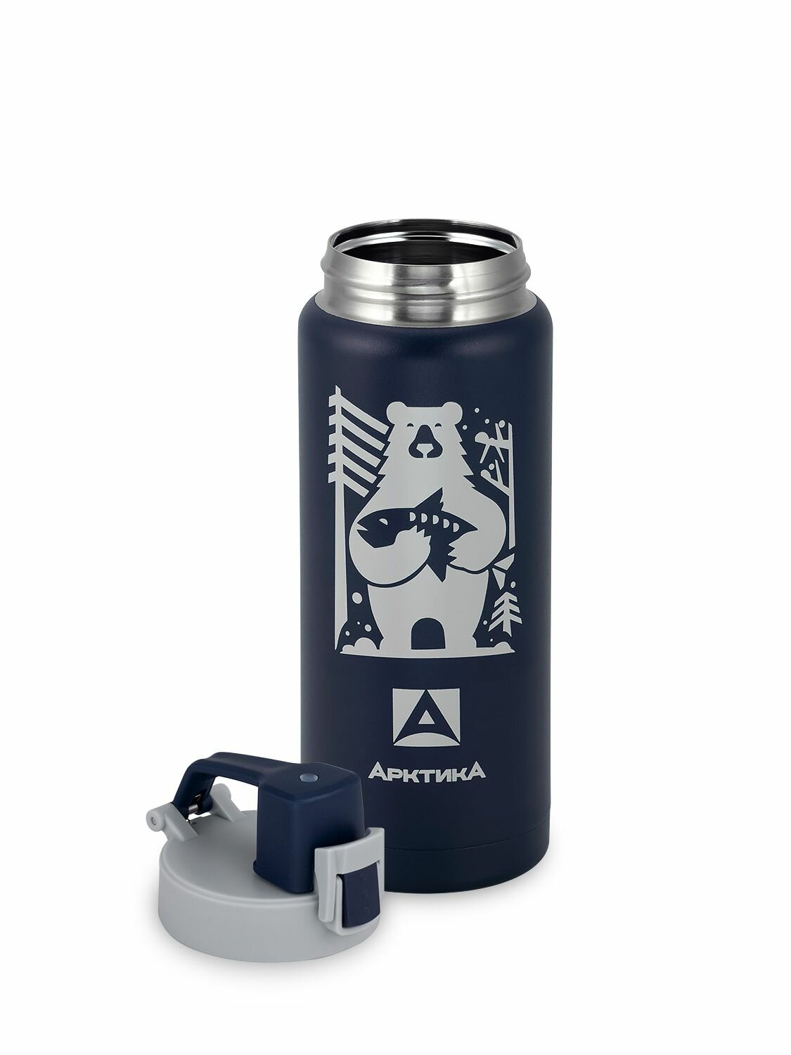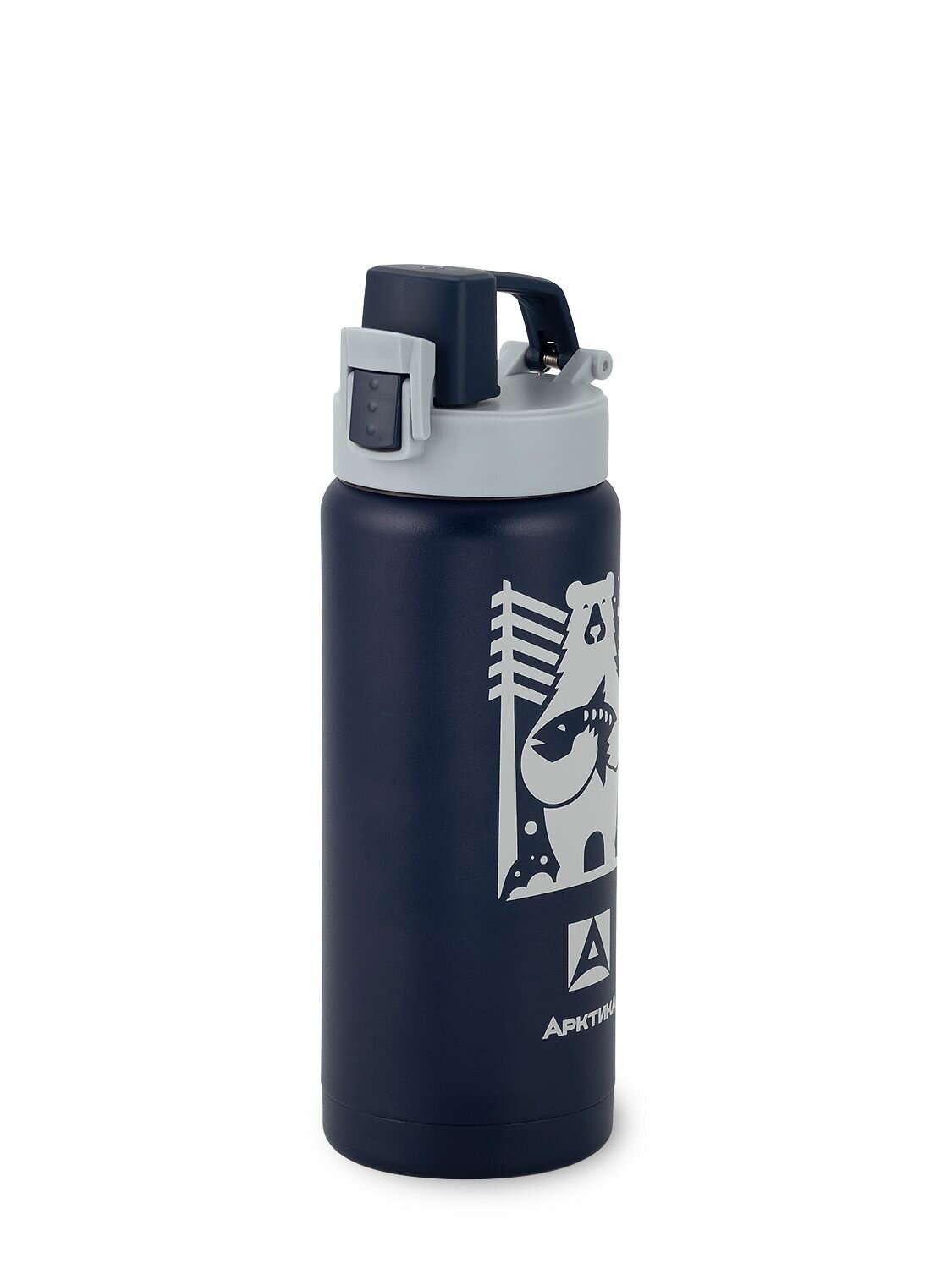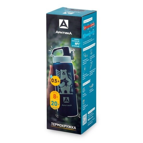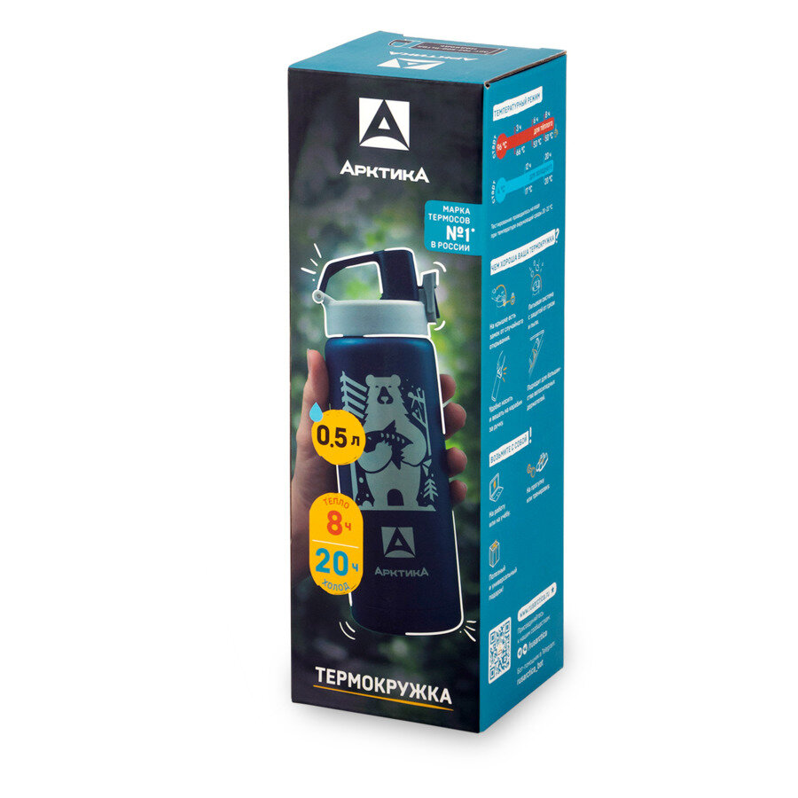 Термокружка для чая и кофе Арктика 702-500 синий медведь 0,5 литров термостакан для напитков питьевой с поилкой и кнопкой-фиксатором