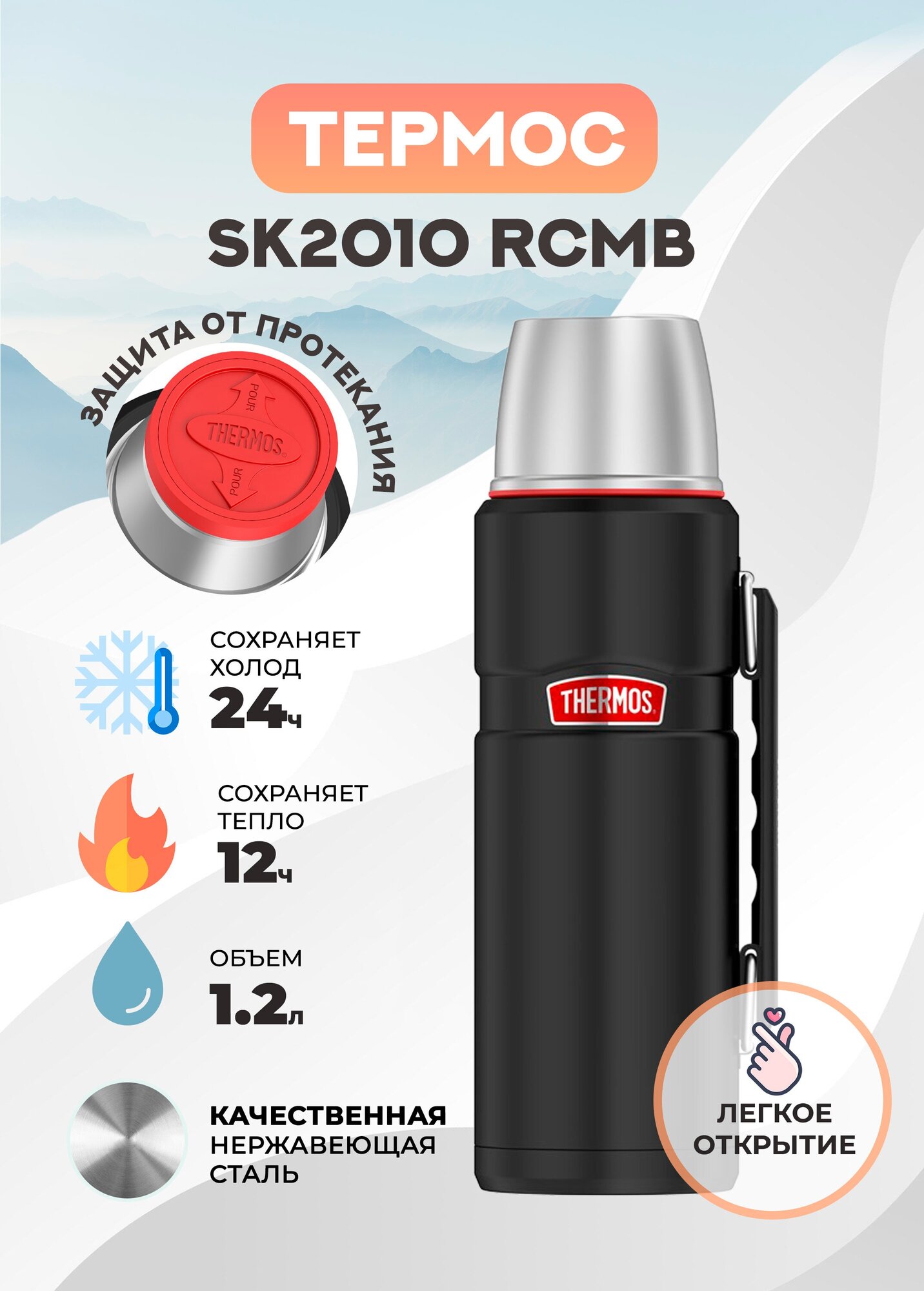 Thermos Термос THERMOS SK2010 RCMB, 1,2л/24h, стальная колба стальная колба, 1.2л, 24h