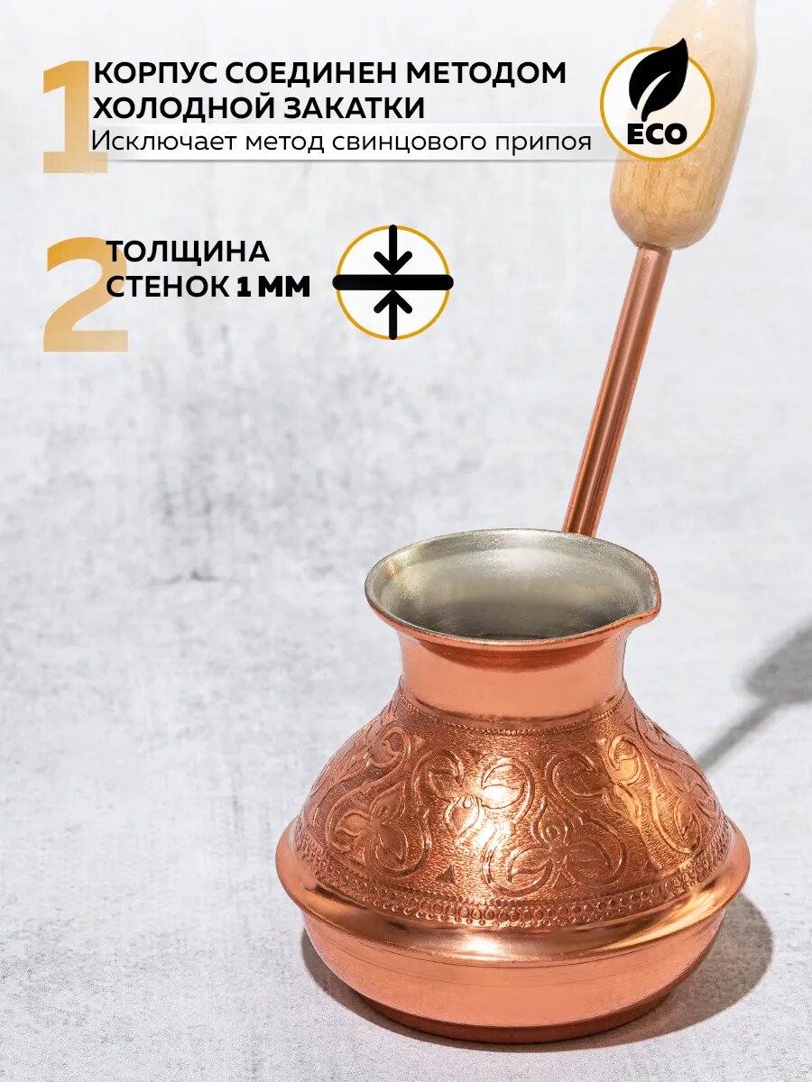 Турка медная TimA "Сказка Востока" ручка несъемная 200 мл