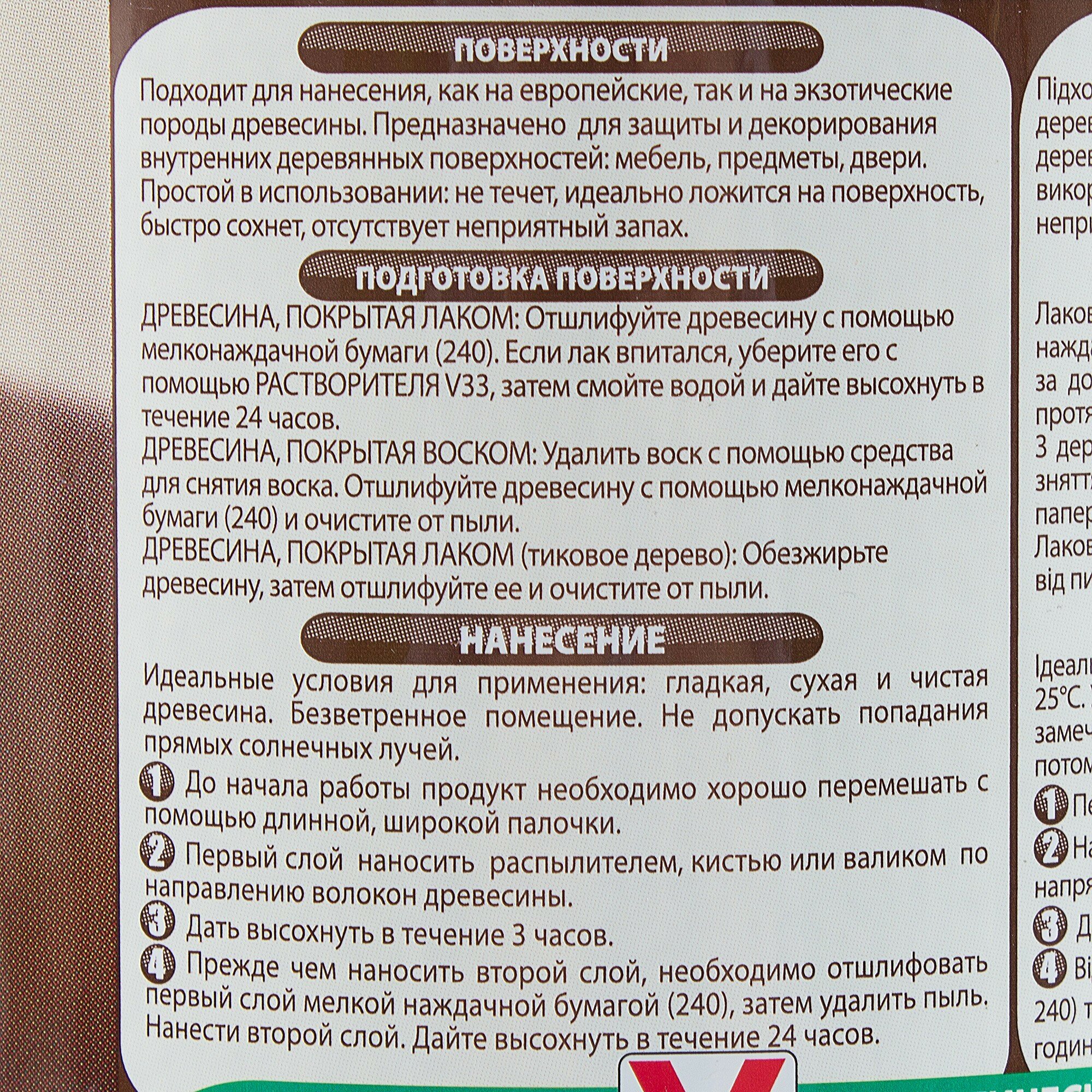 V33 Лак Мебельный Тиковое дерево 1л (102210)