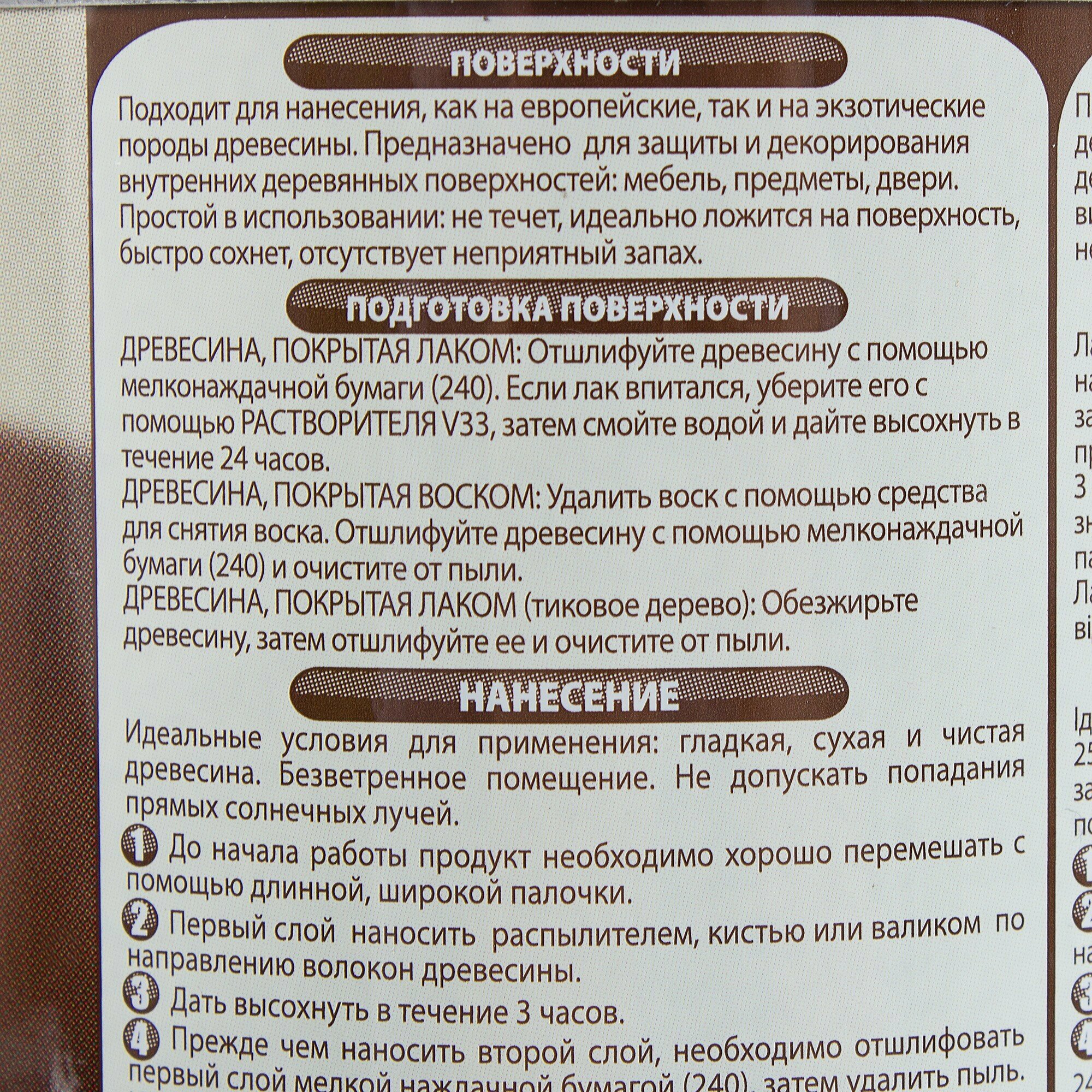 Лак V33 для мебели Тиковое дерево 0,5л