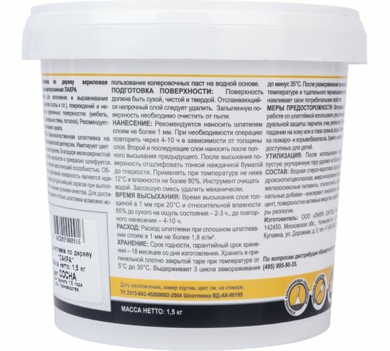 Лакра Шпатлевка по дереву Белый 1,5кг 90001090980