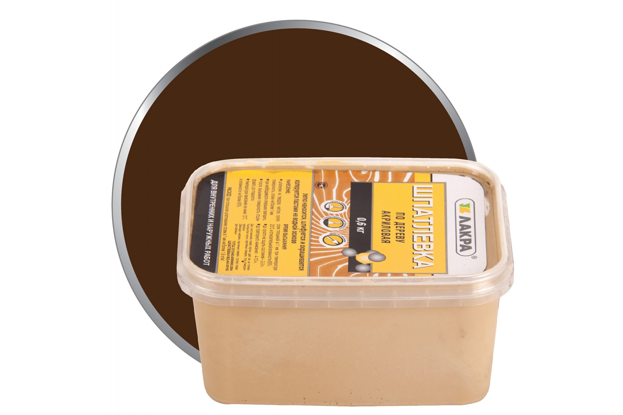 шпатлевка готовая лакра по дереву 0,6кг орех, арт.ШПорех0,6