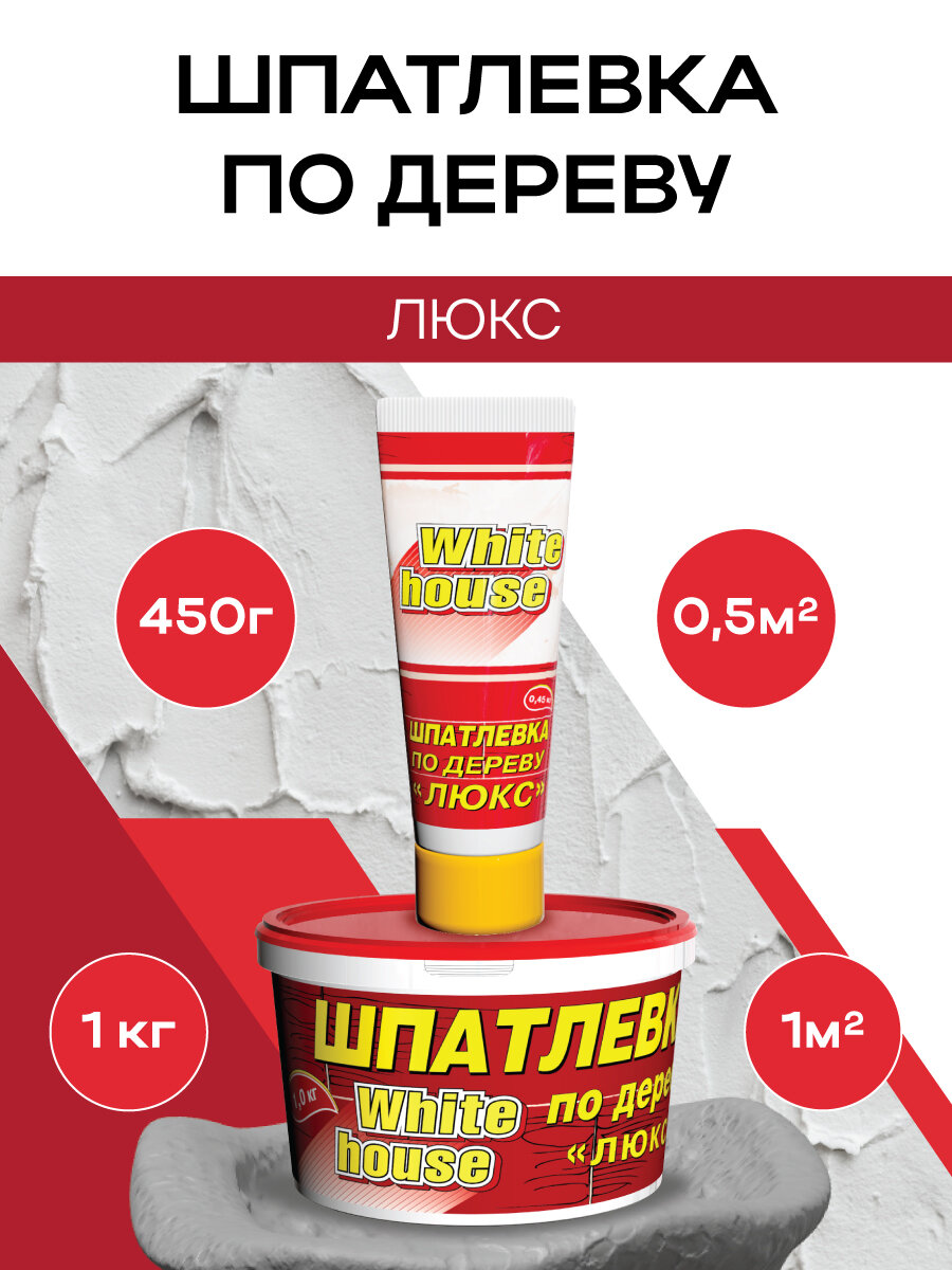 Шпатлевка по Дереву White House 0.45кг Белый, Малоусадочная, Окрашиваемая.