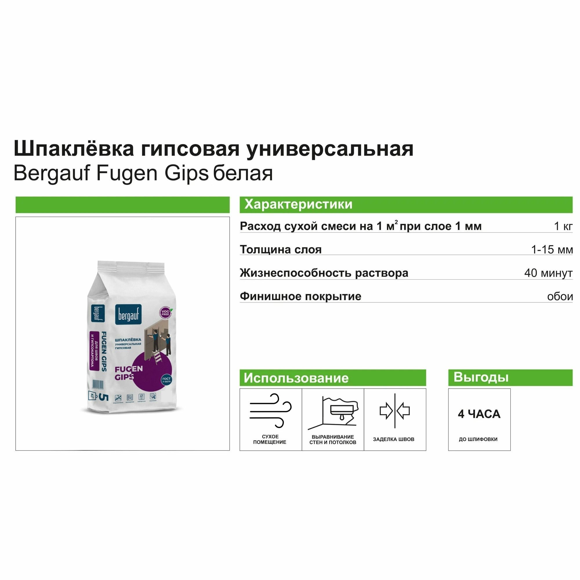 Универсальная шпаклевка Bergauf fugen gips 12153 интересное: