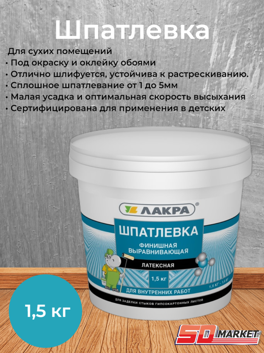 Латексная финишная выравнивающая шпатлевка для гипсокартона лакра 90005285929