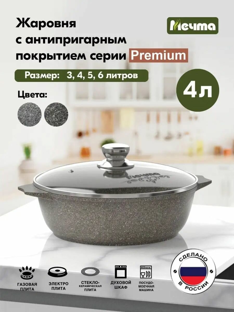 СохранитьЖаровня Мечта 4 л Премиум с антипригарным покрытием с крышкой, НЕ индукционная интересное: