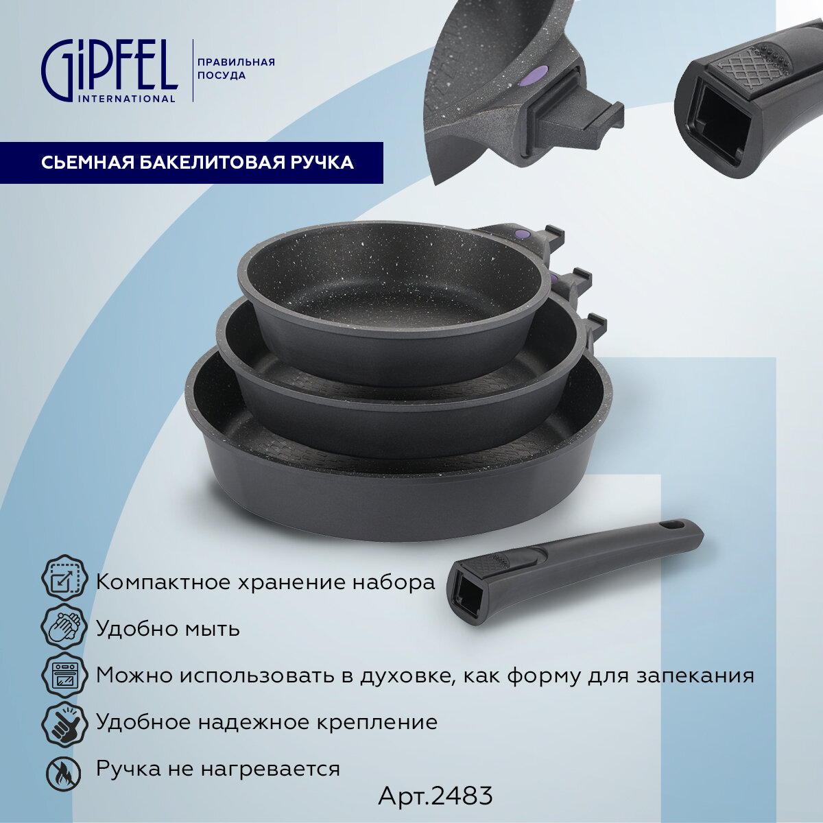 Сковорода GIPFEL Proofet 2478, 26см, съемная ручка, без крышки, черный