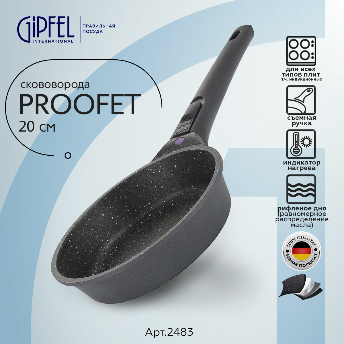 Сковорода GIPFEL Proofet 2483, 20см, съемная ручка, без крышки, черный