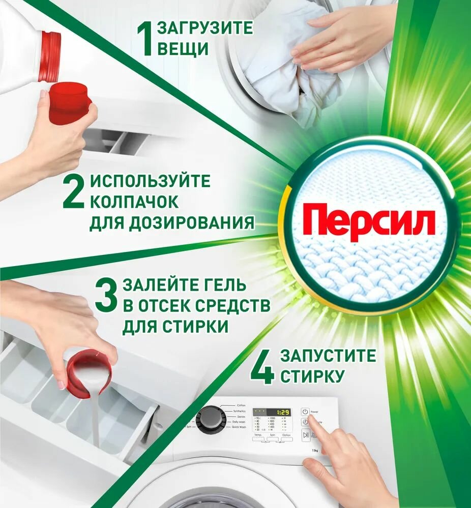 Гель для стирки Персил Свежесть от Вернель, 2х1,95 л, для белого белья, 60 стирок, жидкий порошок для стирки