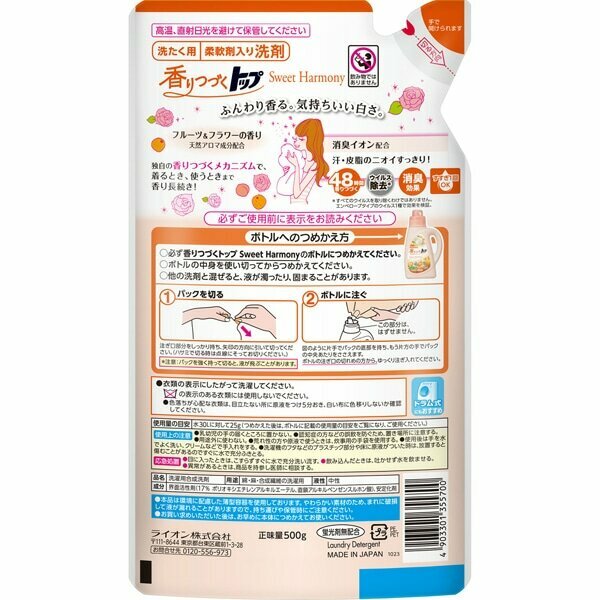 Купить Жидкое средство для стирки Lion ТОП Сладкая гармония, японское, с кондиционером, 500 г.