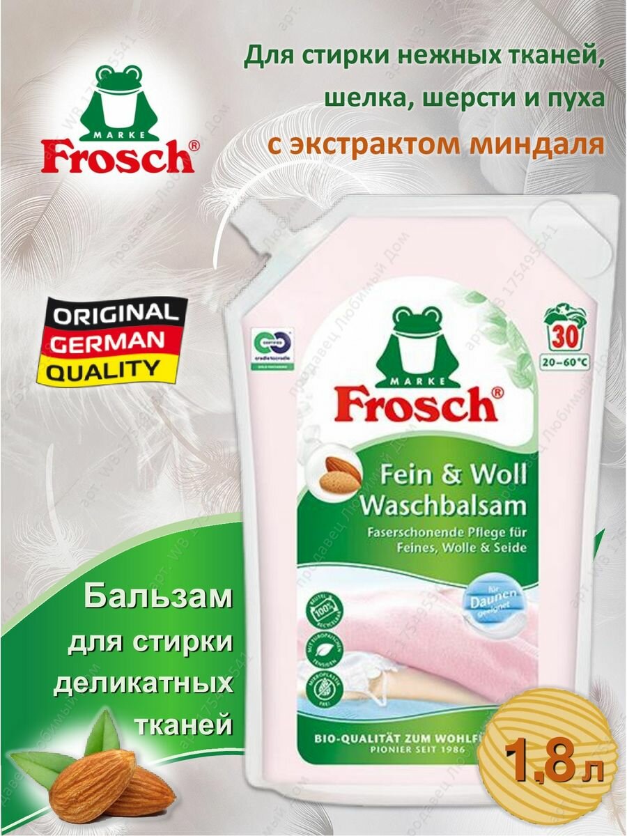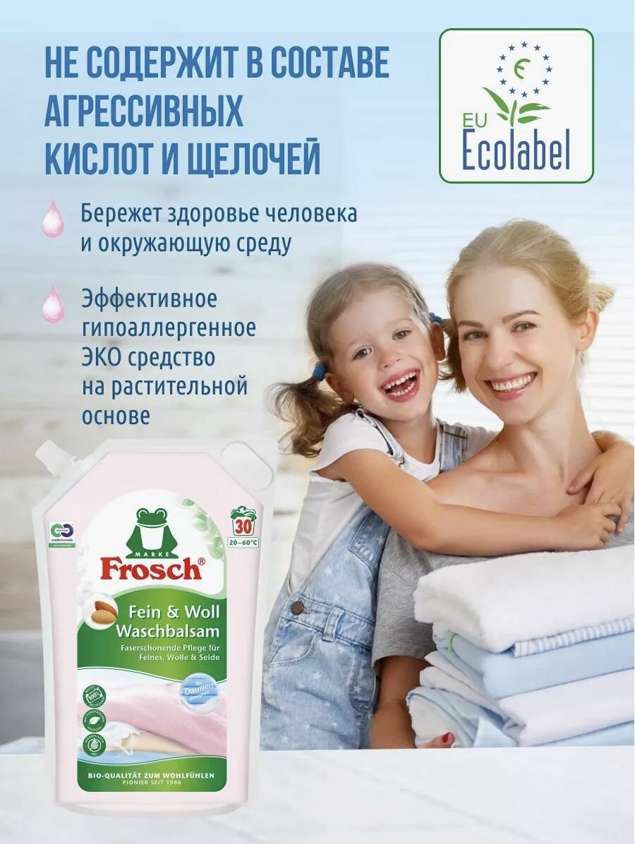 Купить Бальзам для стирки Frosch фрош для шерстяных и нежных тканей, 1.8 л, мягкая упаковка