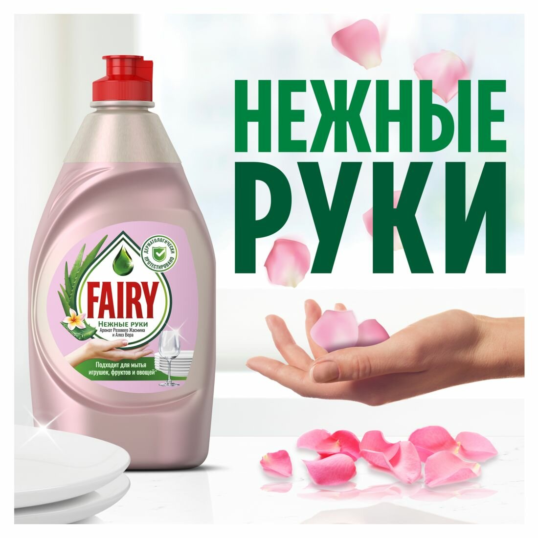 Fairy Средство для мытья посуды Нежные руки, Розовый Жасмин и Алоэ Вера, 900мл, 2шт
