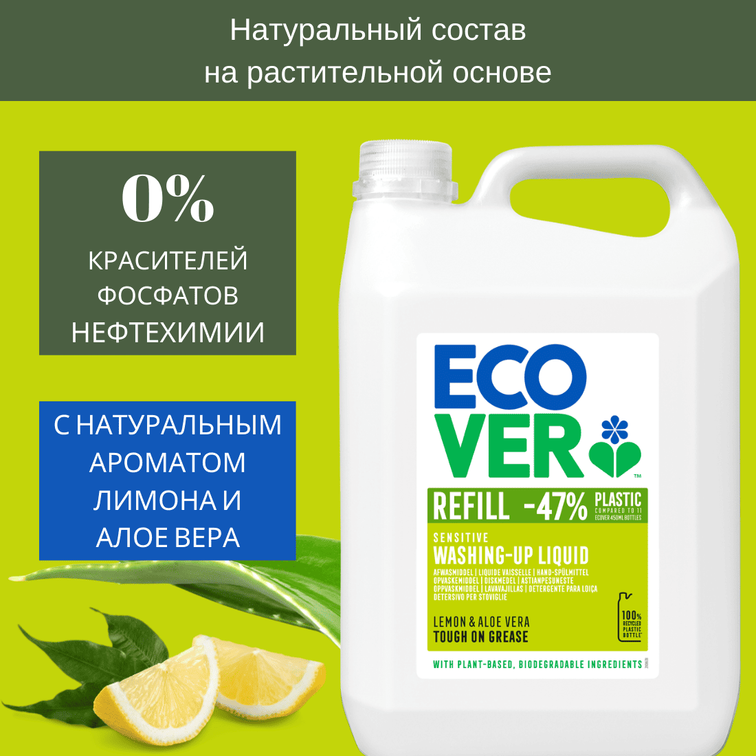 Ecover Жидкость для мытья посуды Лимон и Алоэ вера, 5л. интересное: