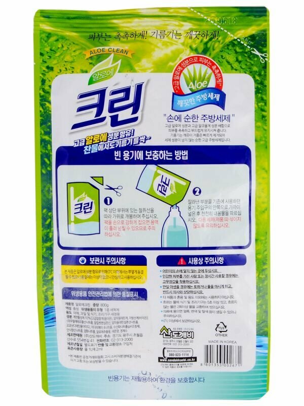 Купить Sandokkaebi Cредство для мытья посуды "Алоэ Клин" / Гель для мытья посуды, фруктов и овощей / Моющее средство для посуды с эксрактом алоэ / Мытье посуды 800 гр. мягкая упаковка / Корея