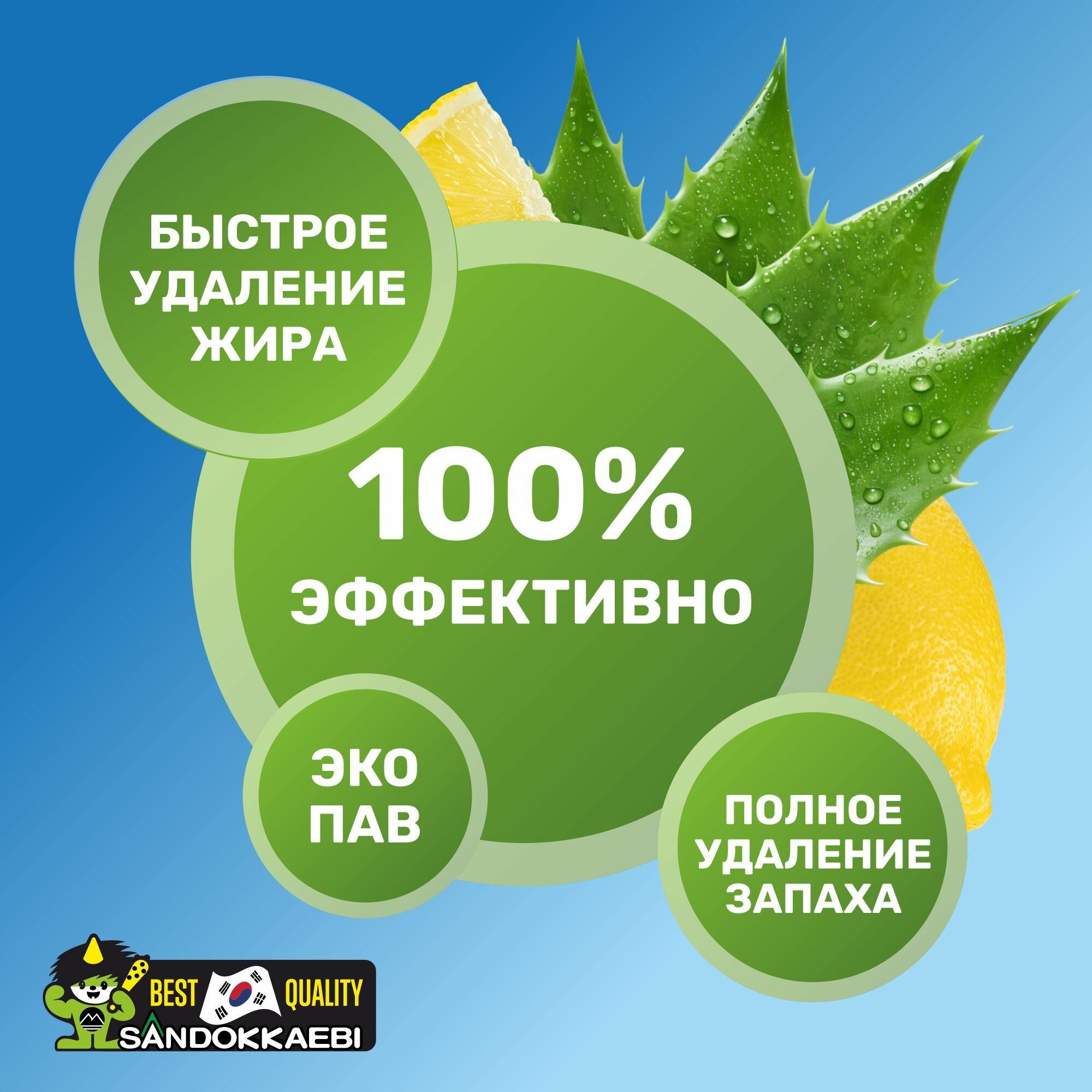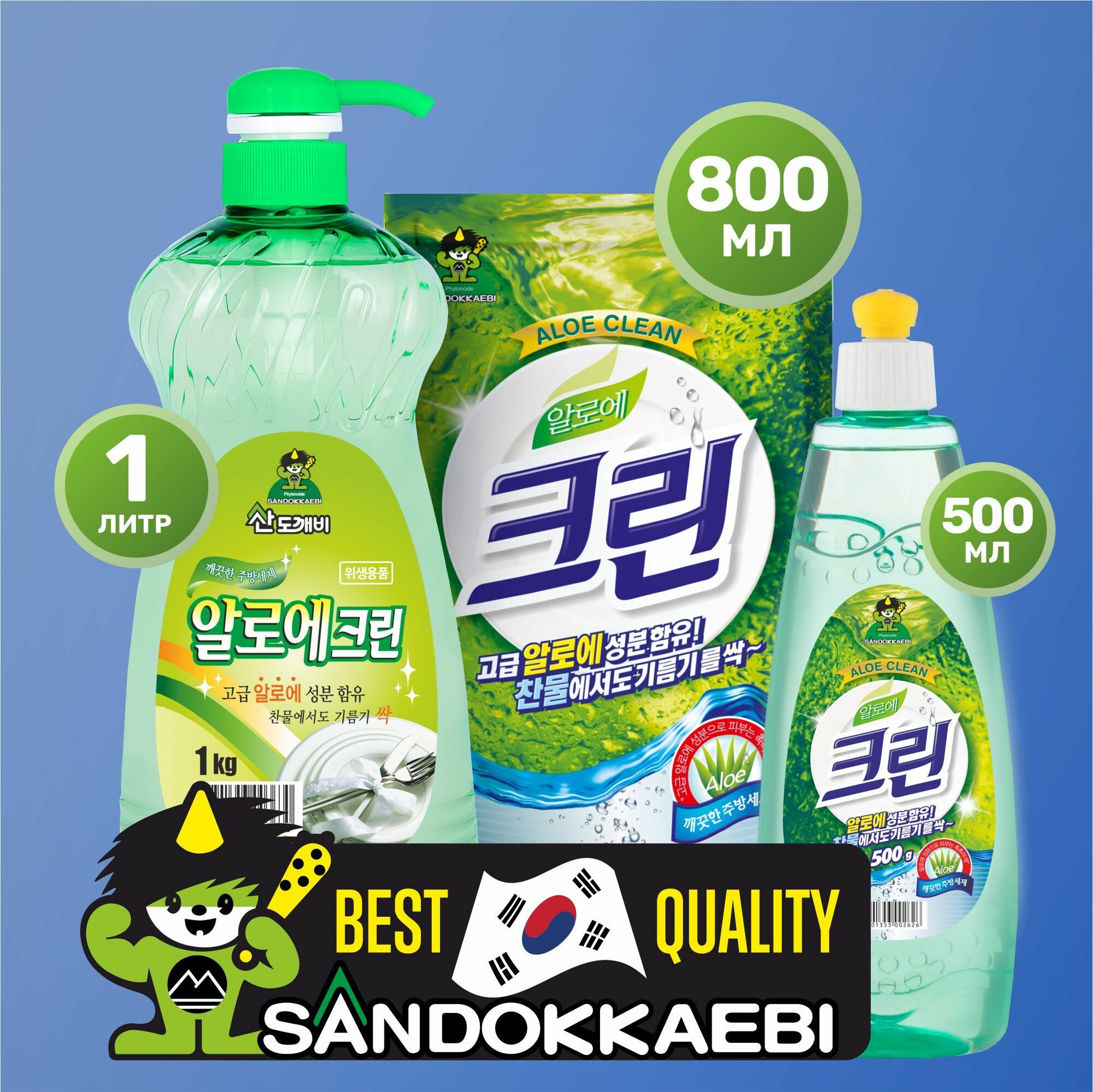 Sandokkaebi Cредство для мытья посуды "Алоэ Клин" / Гель для мытья посуды, фруктов и овощей / Моющее средство для посуды с эксрактом алоэ / Мытье посуды 1 кг. / Корея