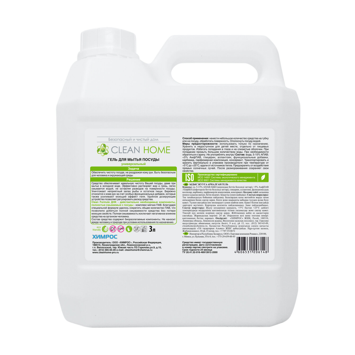 Гель для мытья посуды CLEAN HOME профессиональная забота 3л 4606531206148