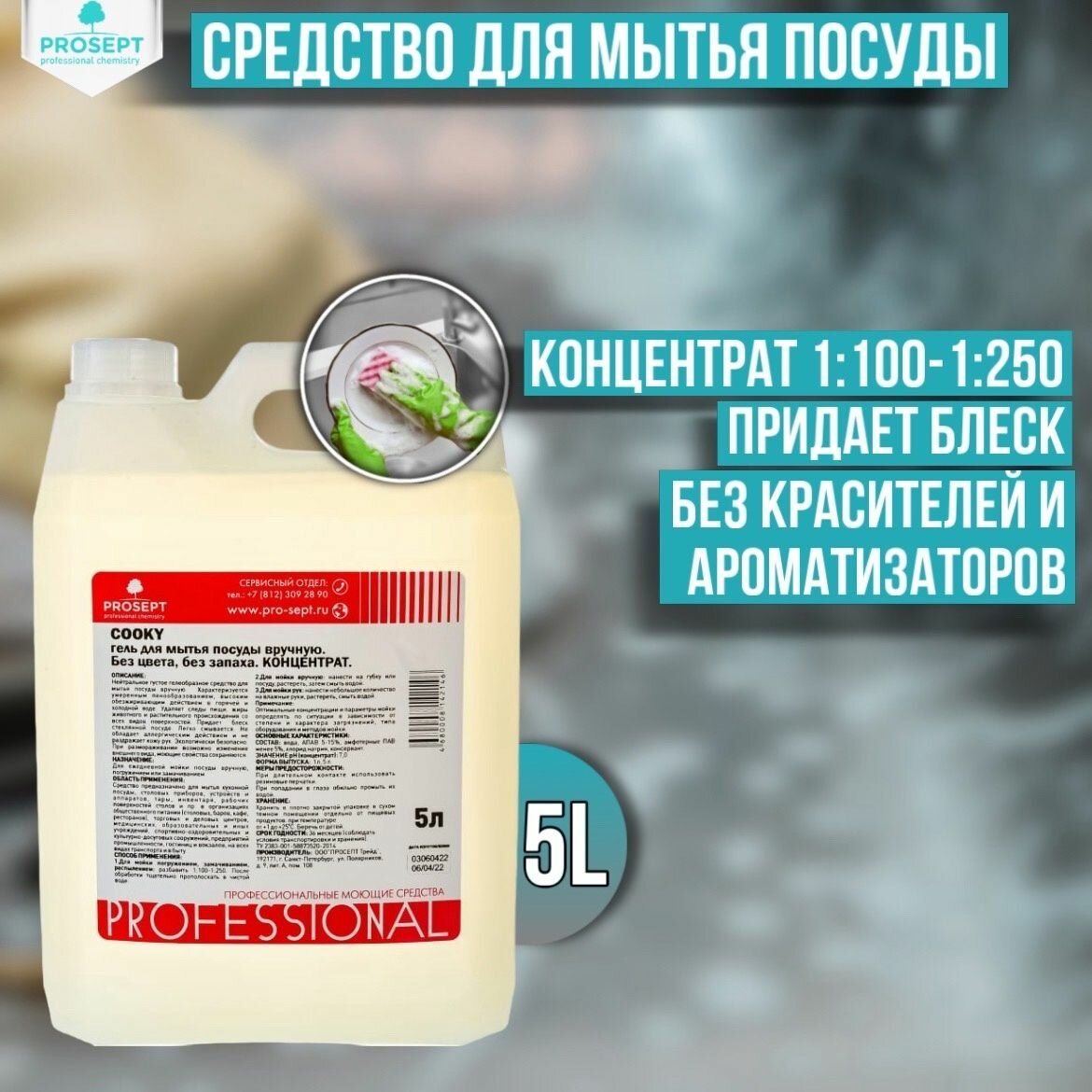 Гель для мытья посуды вручную Prosept Cooky концентрат (5л) без запаха