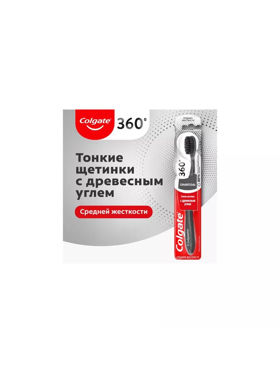 Зубная щетка Colgate средней жесткости 360 Древесный уголь
