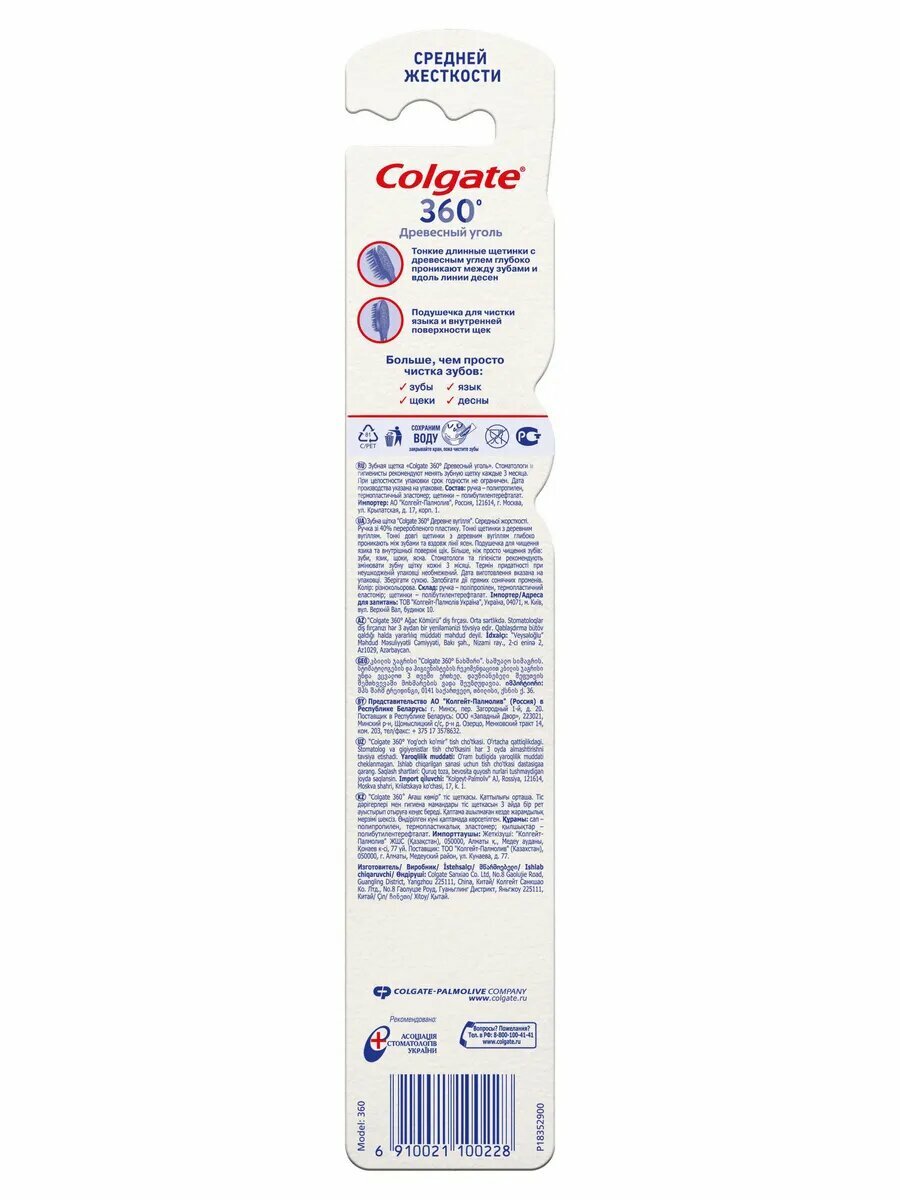 COLGATE 360 Древесный уголь многофункциональная зубная щетка, средней жесткости