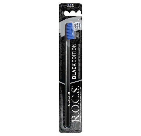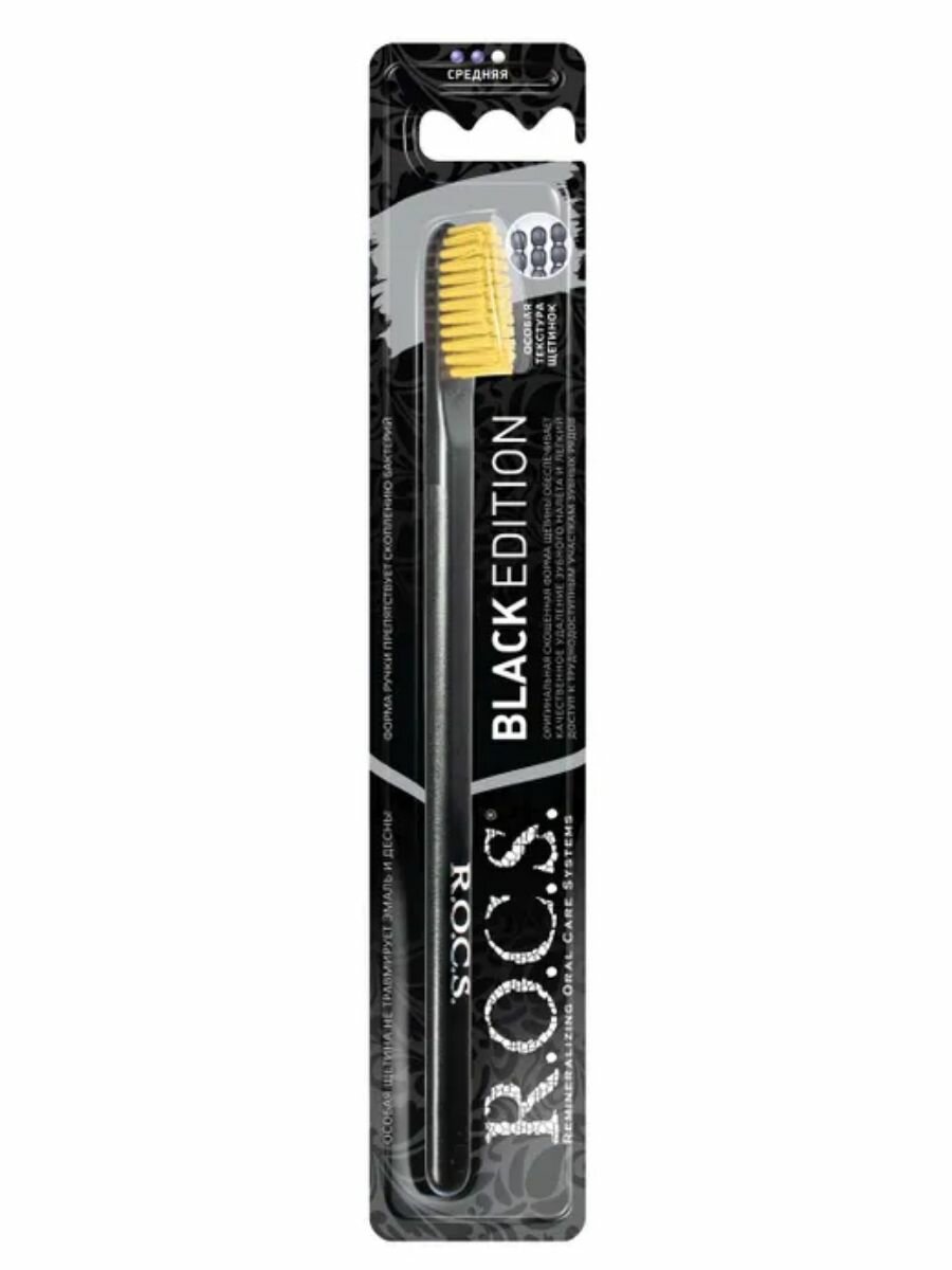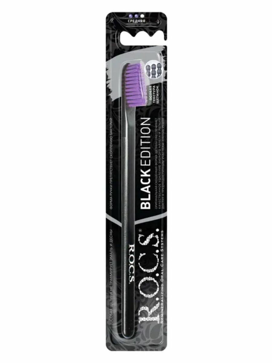 R.O.C.S. Black Edition Classic Зубная щетка средняя черная Цвет щетины в ассортименте: черный, красный, розовый, желтый.