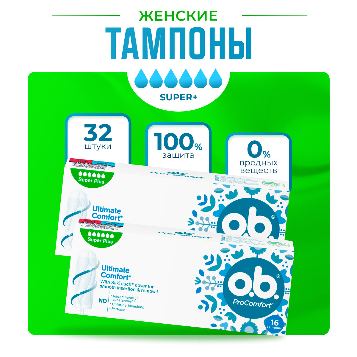 O.B. Тампоны женские гигиенические ProComfort Super, 2 упаковки х 16 шт.