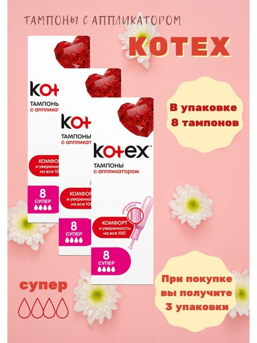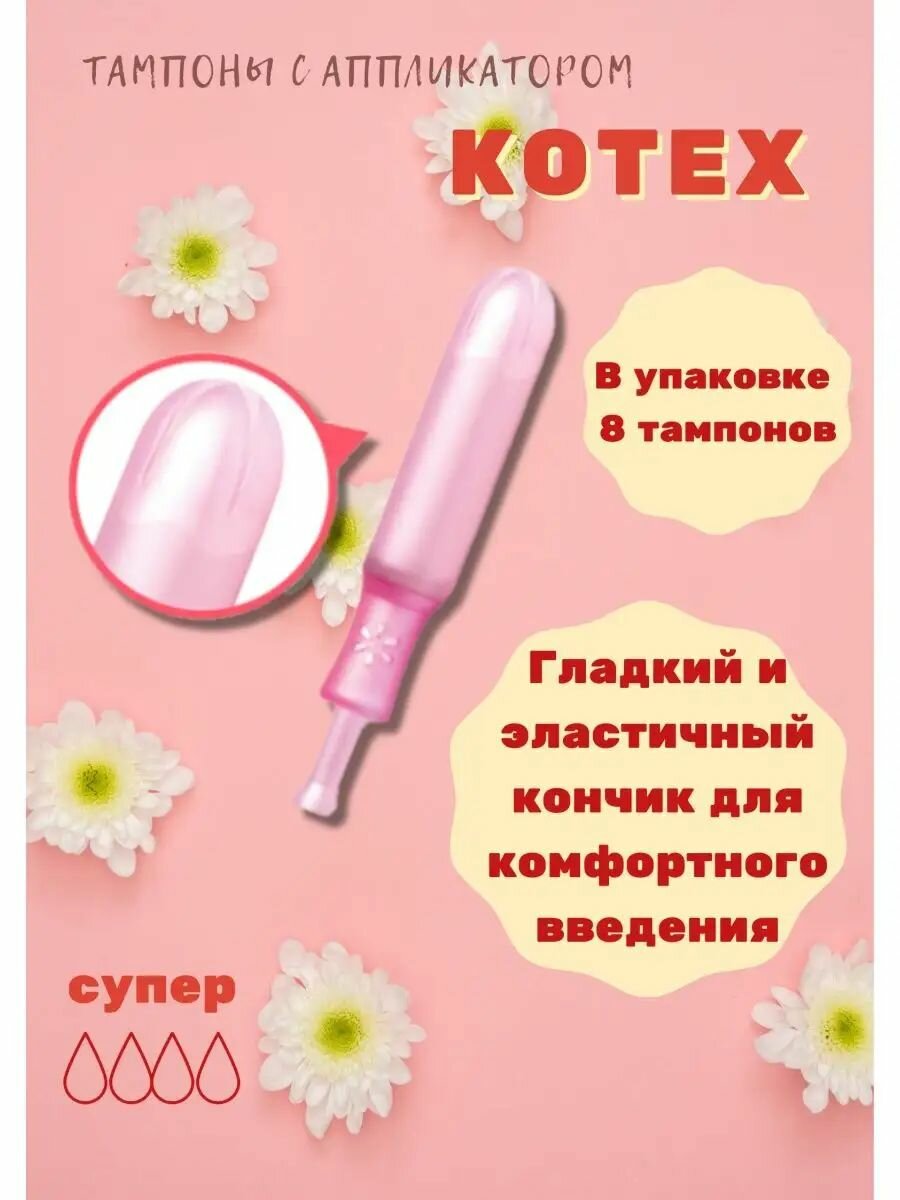 Тампоны Kotex Super, с аппликатором, 8 шт в упаковке