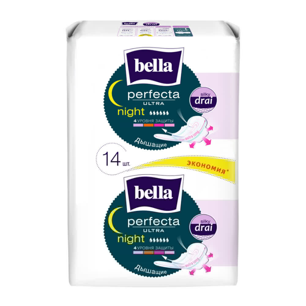 Супертонкие гигиенические прокладки Bella Perfecta Ultra Night с покрытием silky drai, 14 шт