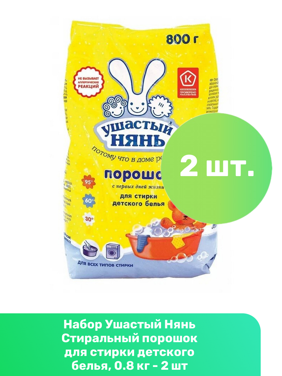 Купить Ушастый Нянь Стиральный порошок для стирки детского белья, 0.8 кг - 2 шт